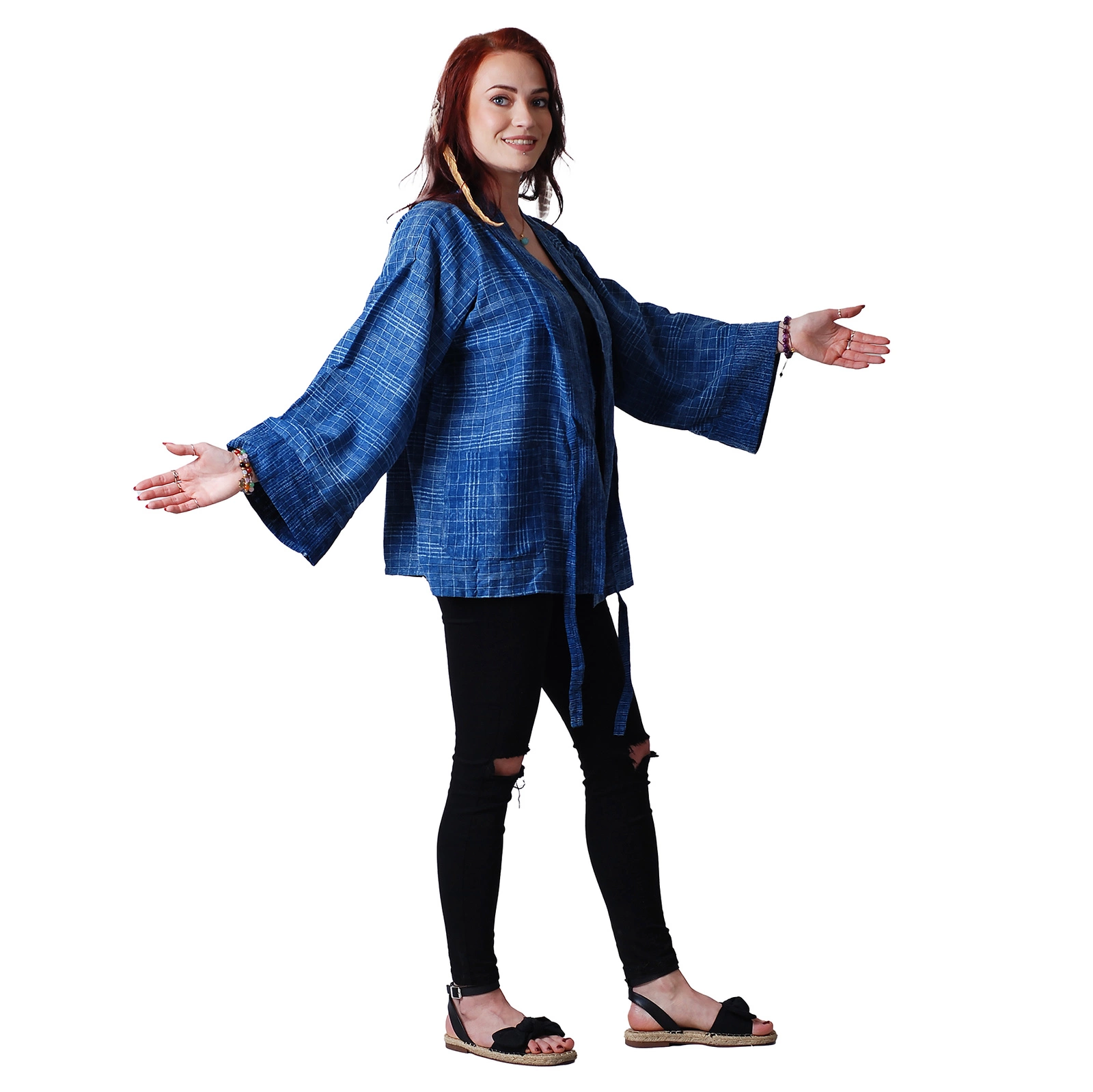 Bawełniane krótkie kimono z Tajlandii to wyjątkowy element garderoby, który łączy orientalny styl z codziennym komfortem. Wykonane z naturalnej, miękkiej bawełny w głębokim odcieniu granatu, zapewnia przewiewność i lekkość noszenia nawet w ciepłe dni. Luźny, otwarty krój kimonowy z szerokimi rękawami pozwala na swobodę ruchów i nadaje stylizacji eleganckiego, artystycznego charakteru. Krótkie kimono doskonale sprawdzi się jako narzutka na top, sukienkę lub letnią bluzkę, tworząc stylowy, a zarazem naturalny look inspirowany tajskim rzemiosłem. To idealny wybór dla osób, które cenią prostotę, wygodę i dyskretny egzotyczny akcent w swojej garderobie.
