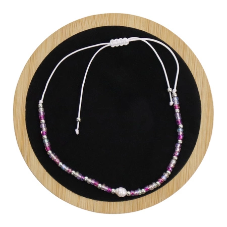 Bransoletka na stopę z koralikami to delikatna i dziewczęca ozdoba, idealna na lato. Na cienkim, białym rzemyku rozmieszczone są drobne koraliki w kolorach bieli i różu, które tworzą lekką, harmonijną kompozycję inspirowaną wakacyjną swobodą i romantycznym stylem boho. Subtelna kolorystyka i lekka forma sprawiają, że bransoletka pięknie prezentuje się na opalonej skórze i uzupełnia każdą letnią stylizację. Bransoletka na stopę z koralikami posiada regulowane zapięcie, dzięki czemu z łatwością dopasujesz ją do kostki. Jest wygodna w noszeniu i odporna na codzienne użytkowanie – idealna na plażę, spacer po mieście czy wieczorne spotkania ze znajomymi. Bransoletka na stopę z koralikami sprawdzi się również jako drobny, uroczy prezent – lekki akcent, który doda stylu każdemu letniemu lookowi.
