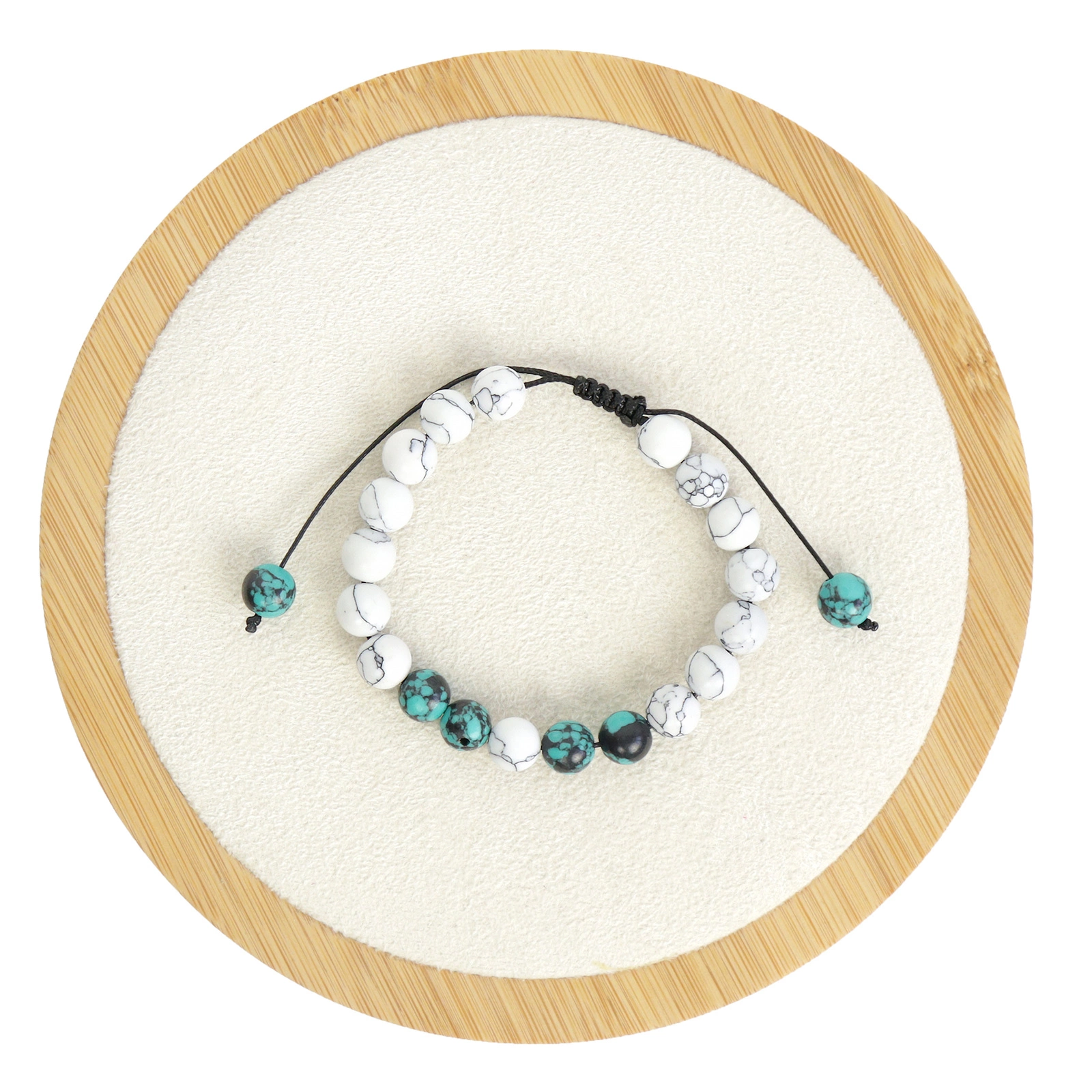Ta bransoletka ściągana kamienna to stylowy dodatek, który łączy naturalne materiały z wygodą noszenia. Regulowany sznurek pozwala łatwo dopasować obwód do nadgarstka, dzięki czemu bransoletka jest wygodna i praktyczna w codziennym użytkowaniu.