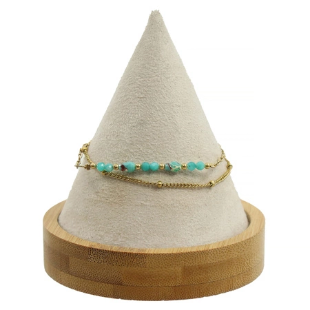 Bransoletka z kamyczkami to subtelna ozdoba, która zachwyca delikatnością i naturalnym wdziękiem. Składa się z cienkiego złotego łańcuszka ze stali nierdzewnej, na którym rozmieszczone są drobne kamienie o przeróżnych kształtach i kolorach. Każdy wzór tej bransoletki jest inny – unikalny i lekki, idealny do codziennego noszenia. Bransoletka z kamyczkami łączy nowoczesną prostotę z ponadczasowym urokiem naturalnych materiałów. To bransoletka, która dodaje stylizacji kobiecej lekkości i subtelnego, naturalnego blasku. Dzięki delikatnemu wykonaniu i różnorodnym wzorom, świetnie sprawdzi się zarówno solo, jak i w połączeniu z innymi bransoletkami. Bransoletka z kamyczkami to doskonały dodatek dla osób ceniących minimalizm z duszą. Każdy egzemplarz może nieznacznie różnić się układem kamieni, co czyni go wyjątkowym. Idealna również jako drobny, ale osobisty prezent.