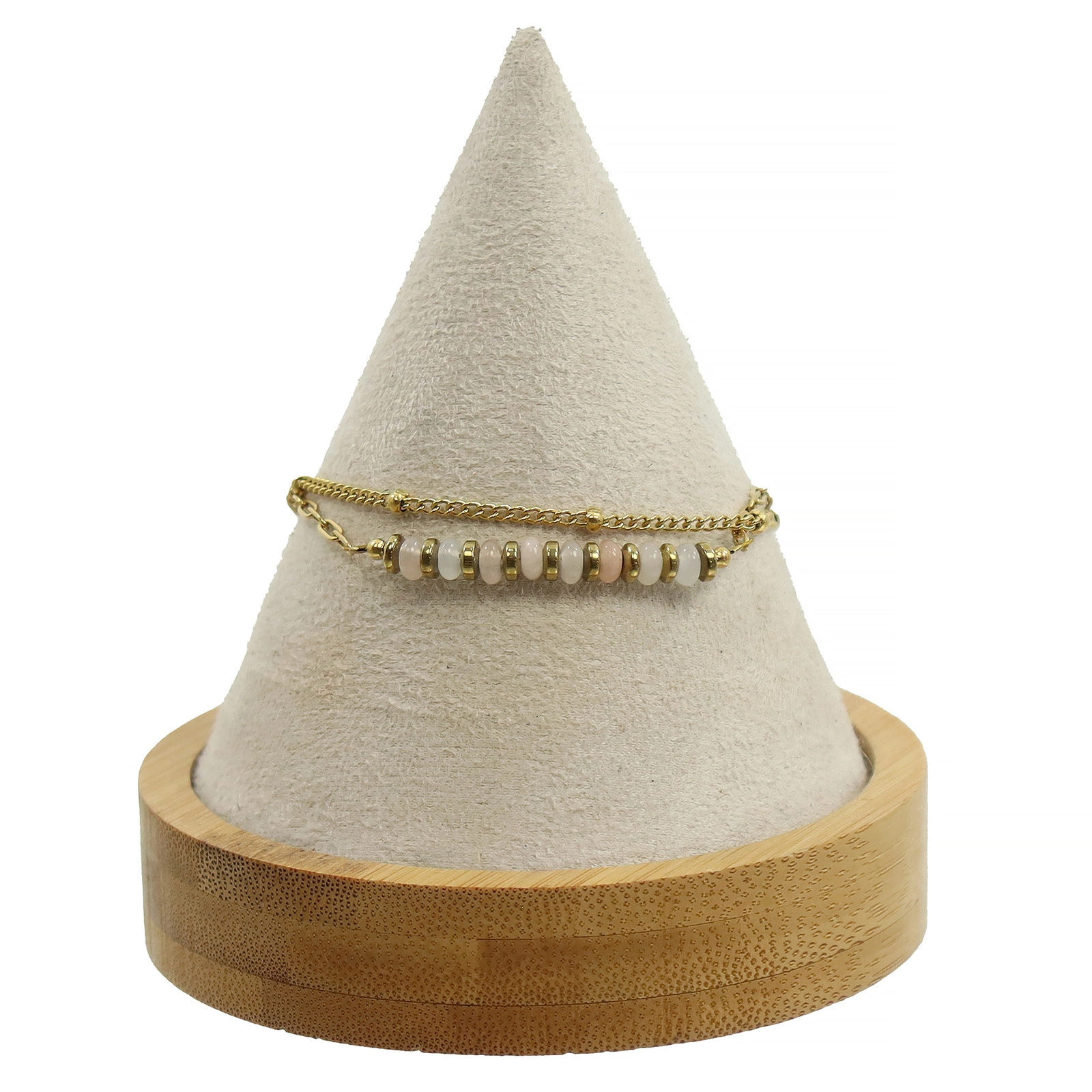 Bransoletka z kamyczkami to subtelna ozdoba, która zachwyca delikatnością i naturalnym wdziękiem. Składa się z cienkiego złotego łańcuszka ze stali nierdzewnej, na którym rozmieszczone są drobne kamienie o przeróżnych kształtach i kolorach. Każdy wzór tej bransoletki jest inny – unikalny i lekki, idealny do codziennego noszenia. Bransoletka z kamyczkami łączy nowoczesną prostotę z ponadczasowym urokiem naturalnych materiałów. To bransoletka, która dodaje stylizacji kobiecej lekkości i subtelnego, naturalnego blasku. Dzięki delikatnemu wykonaniu i różnorodnym wzorom, świetnie sprawdzi się zarówno solo, jak i w połączeniu z innymi bransoletkami. Bransoletka z kamyczkami to doskonały dodatek dla osób ceniących minimalizm z duszą. Każdy egzemplarz może nieznacznie różnić się układem kamieni, co czyni go wyjątkowym. Idealna również jako drobny, ale osobisty prezent.