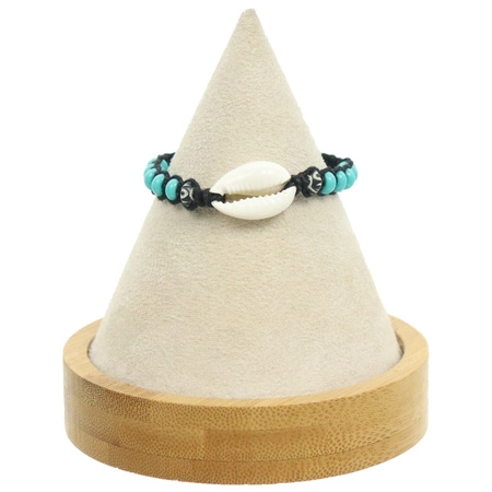 Bransoletka z muszelką kauri to subtelny dodatek inspirowany naturą i tradycyjnymi wzorami biżuterii etnicznej. Wykonana na regulowanym sznurku, ozdobiona jest naturalną muszelką kauri oraz drobnymi turkusowymi koralikami. Dzięki regulacji łatwo dopasowuje się do nadgarstka, zapewniając wygodę noszenia każdego dnia.