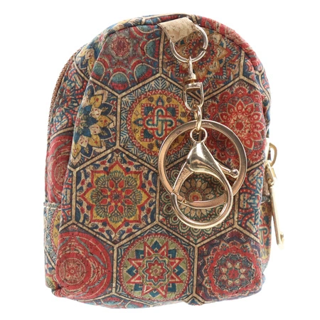Brelok z sakiewką to praktyczny i dekoracyjny dodatek, który łączy funkcję klasycznego breloka z małą korkową sakiewką. Sakieweczka ozdobiona jest indyjskimi wzorami, dzięki czemu każdy egzemplarz przyciąga wzrok oryginalnym wyglądem. Sprawdzi się do przechowywania drobnych przedmiotów, takich jak monety, pierścionek czy małe amulety.