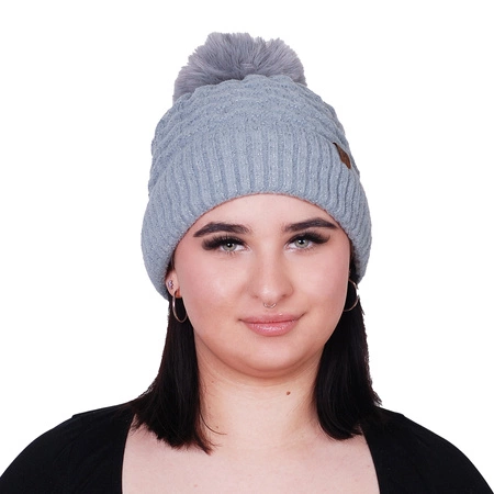 Czapka z pomponem i srebrną nitką