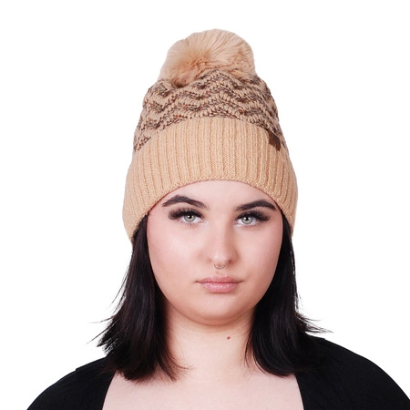 Elastyczny ściągacz sprawia, że czapka z pomponem i wzorem doskonale dopasowuje się do kształtu głowy, nie uciskając i nie zsuwa się podczas noszenia. To połączenie funkcjonalności i modnego designu, które świetnie uzupełni każdą zimową stylizację – od codziennej po bardziej elegancką.