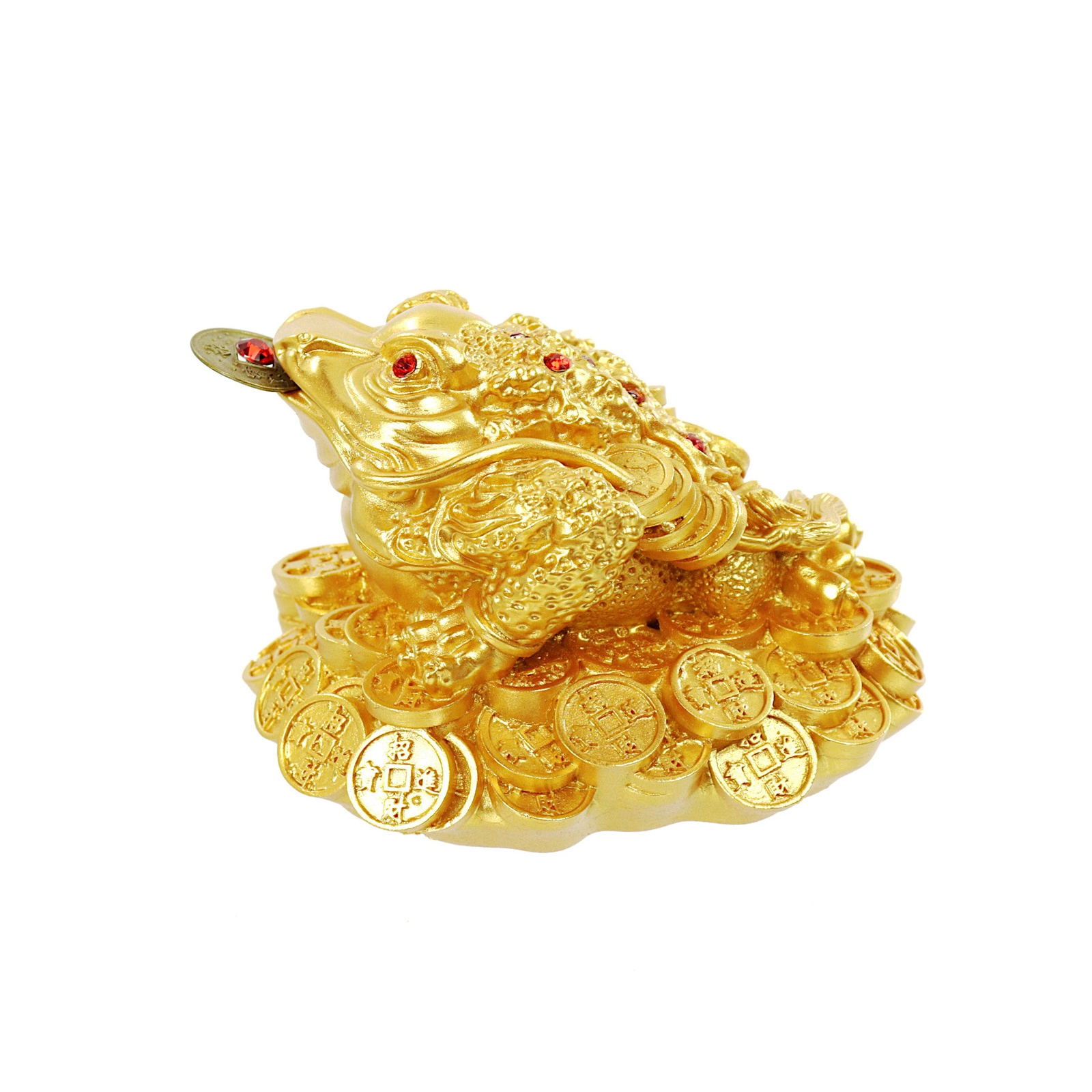 Przyciągnij do swojego domu pomyślność i dobrobyt dzięki dekoracyjnej żabce na szczęście z monetą. Ta klasyczna chińska figurka przedstawia trójnożną ropuchę trzymającą monetę – symbol bogactwa, ochrony i stabilności materialnej. Duża żabka na szczęście z monetą w wersji złotej lub miedzianej to dekoracja, która wprowadza do wnętrza pozytywną energię i orientalny charakter.