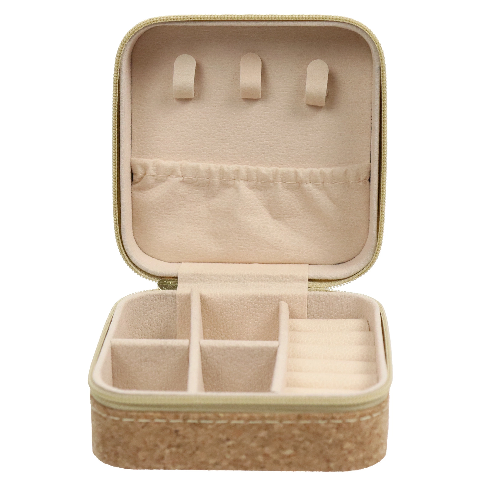 Praktyczne i estetyczne etui na biżuterię wykonane z naturalnego korka to idealne rozwiązanie dla osób, które chcą bezpiecznie przechowywać ulubione dodatki w podróży. Zamykana na zamek błyskawiczny etui na biżuterię chroni zawartość przed zarysowaniami i przypadkowym zgubieniem, a jej kompaktowy rozmiar zmieści się nawet w małej torebce. Wnętrze zaprojektowane zostało z myślą o organizacji – osobne przegródki ułatwiają uporządkowanie pierścionków, kolczyków czy łańcuszków.