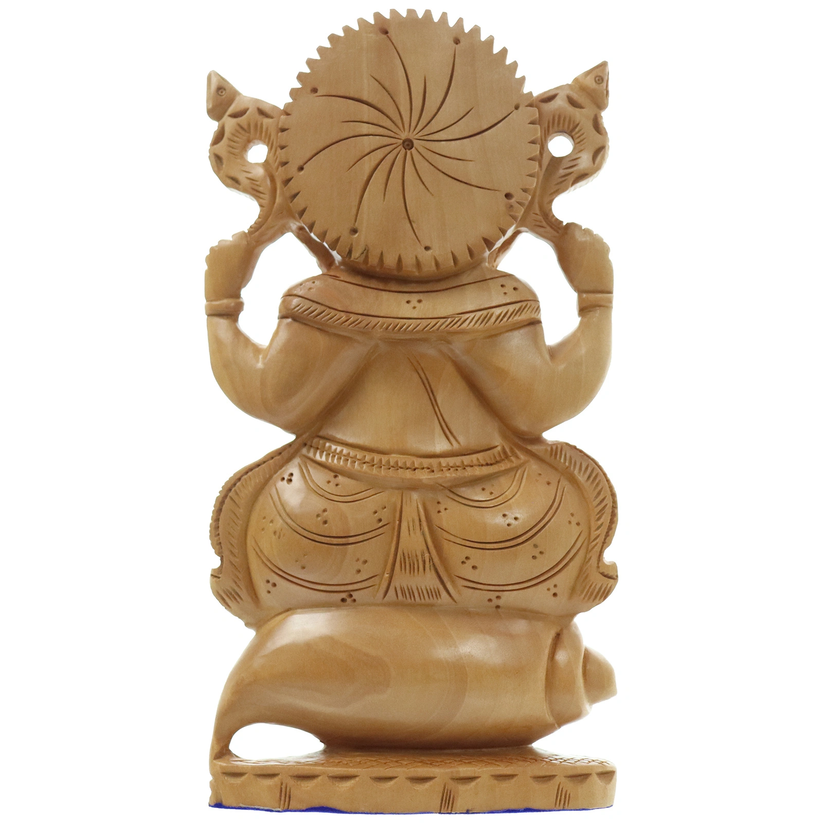 Drewniana figurka Ganeśi to starannie wykonana dekoracja o głębokiej symbolice, powstała ręcznie w Indiach. Przedstawia boga siedzącego na muszli Śankha, atrybucie boga Wisznu i bogini Lakszmi, symbolizuje moc, czystość i piękno, reprezentuje także wyzwolenie. Prawa dłoń Ganeśi uniesiona jest w geście błogosławieństwa abhaya mudr , oznaczającym spokój, bezpieczeństwo oraz wsparcie na życiowej drodze. Naturalne drewno nadaje rzeźbie ciepły, organiczny charakter, a każdy egzemplarz zachowuje unikalność dzięki rzemieślniczemu wykonaniu. Drewniana figurka Ganeśi łączy tradycyjną indyjską sztukę z bogatą symboliką, tworząc wyrazisty, a jednocześnie harmonijny akcent dekoracyjny.
