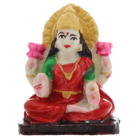 Kolorowa figurka Lakszmi przedstawia boginię dobrobytu i pomyślności w charakterystycznym, barwnym stylu znanym z indyjskich targowisk. Wykonana z pomalowanego gipsu, ma prosty, przaśny urok, który oddaje klimat codziennej, ludowej estetyki Indii. Lakszmi ukazana jest z gestem abhaya mudra, czyli uniesioną prawą dłonią symbolizuje spokój, ochronę i życzliwość, jakie bogini ofiarowuje swoim czcicielom. Figurka Lakszmi gipsowa łączy żywe kolory z tradycyjną formą, tworząc wyrazistą ozdobę, która wnosi do wnętrza energię i ciepło. Dzięki barwnej stylistyce sprawdzi się zarówno jako element etnicznej dekoracji, jak i niewielki akcent podkreślający zamiłowanie do indyjskiej kultury.