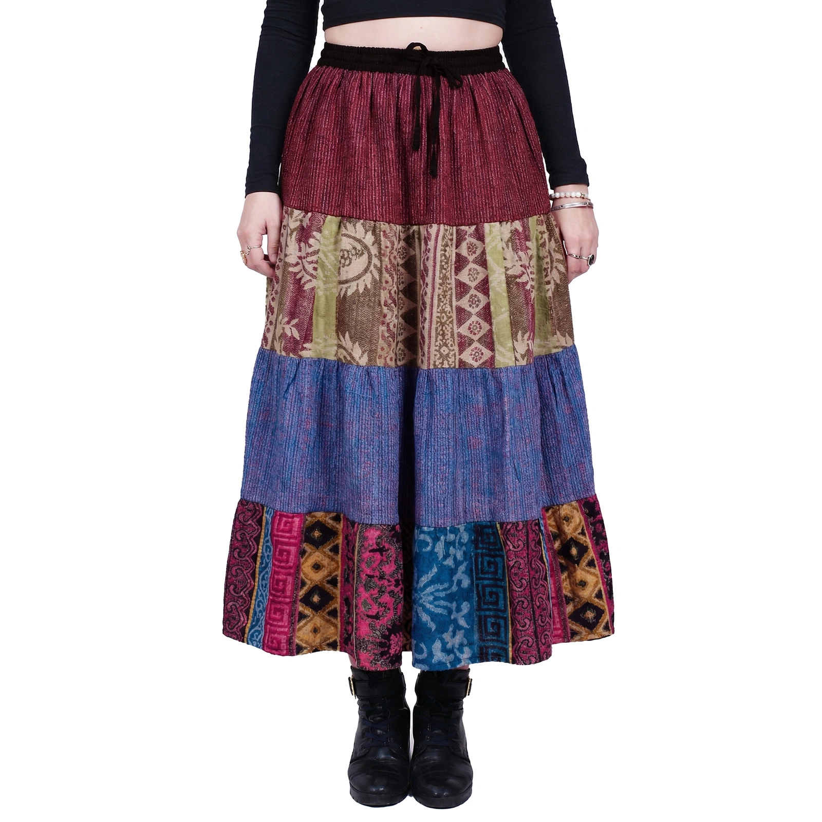 Indie spódnica zimowa to ciepła i stylowa propozycja inspirowana bogactwem indyjskich tkanin i wzorów. Wykonana z grubszej, przyjemnej w dotyku tkaniny, doskonale sprawdza się w chłodniejsze dni, zapewniając komfort i ochronę przed zimnem. Spódnica z Indii zachwyca wyrazistymi, etnicznymi motywami oraz głębokimi, nasyconymi kolorami, które dodają stylizacjom wyjątkowego charakteru. Luźny, kobiecy krój pozwala na swobodę ruchów, a elastyczny pas gwarantuje idealne dopasowanie do sylwetki. To idealny wybór dla kobiet, które lubią łączyć ciepło i wygodę z artystycznym, orientalnym stylem w zimowym wydaniu.