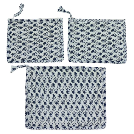Indie zestaw portfeli to praktyczne i estetyczne rozwiązanie dla osób, które cenią porządek i spójny styl. W komplecie znajdują się trzy portfele w różnych rozmiarach – mały, średni i duży – co pozwala dopasować je do różnych potrzeb, od przechowywania drobnych monet po dokumenty i karty. Wykonane z grubej bawełny i ozdobione tradycyjnymi, indyjskimi wzorami, wyróżniają się oryginalnym wyglądem i solidnością.