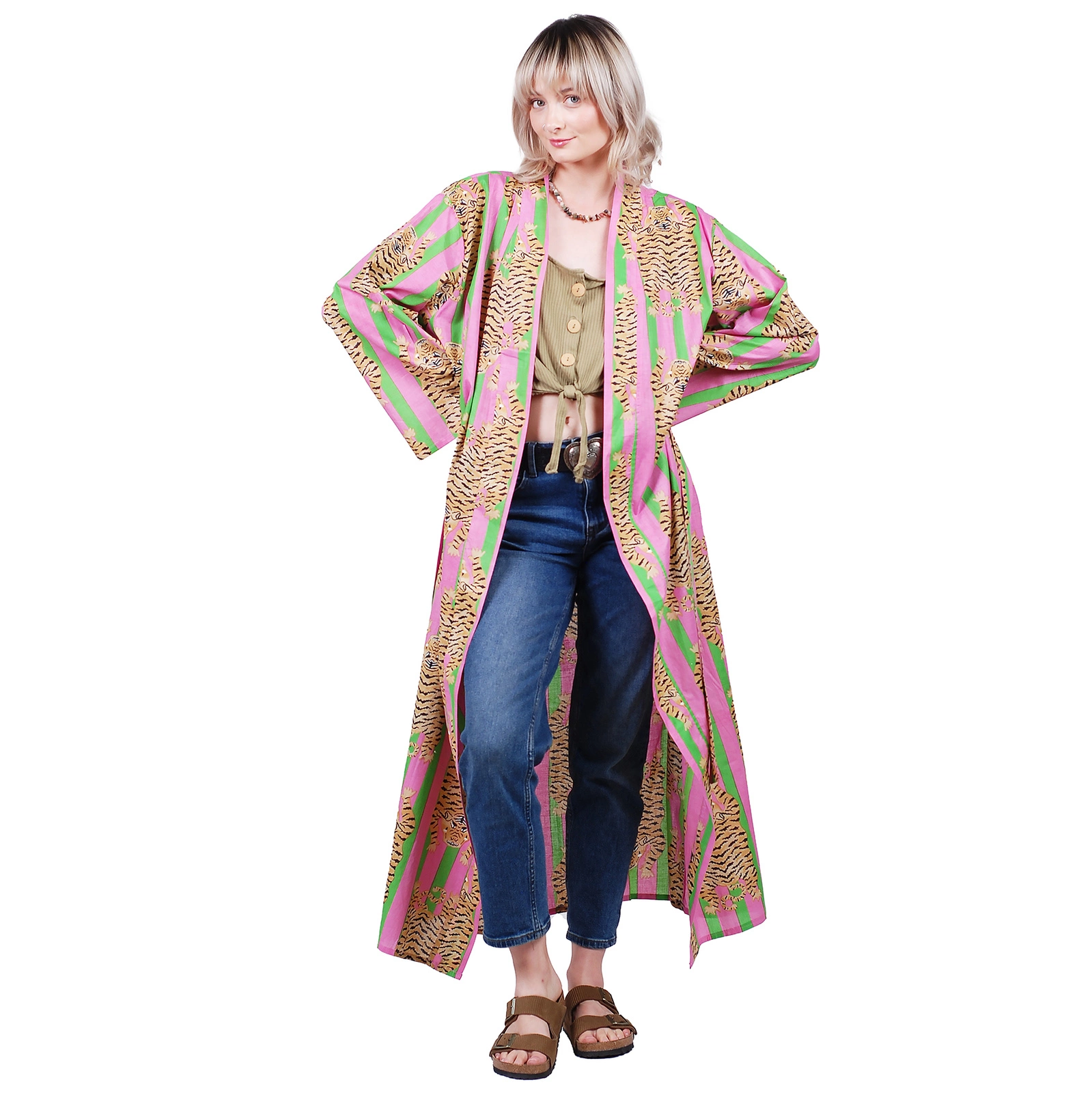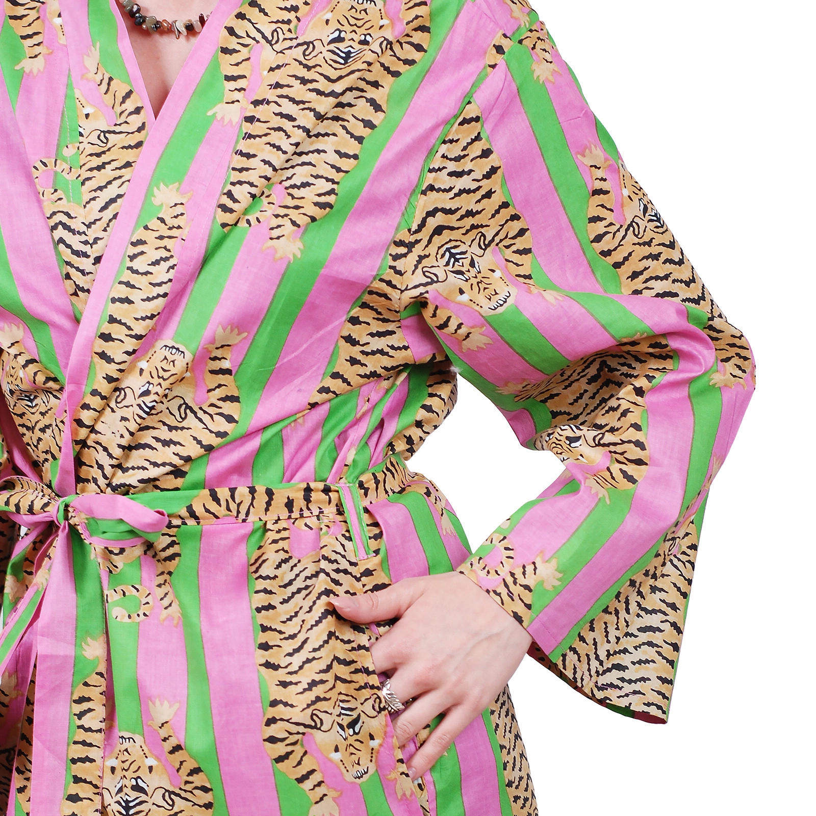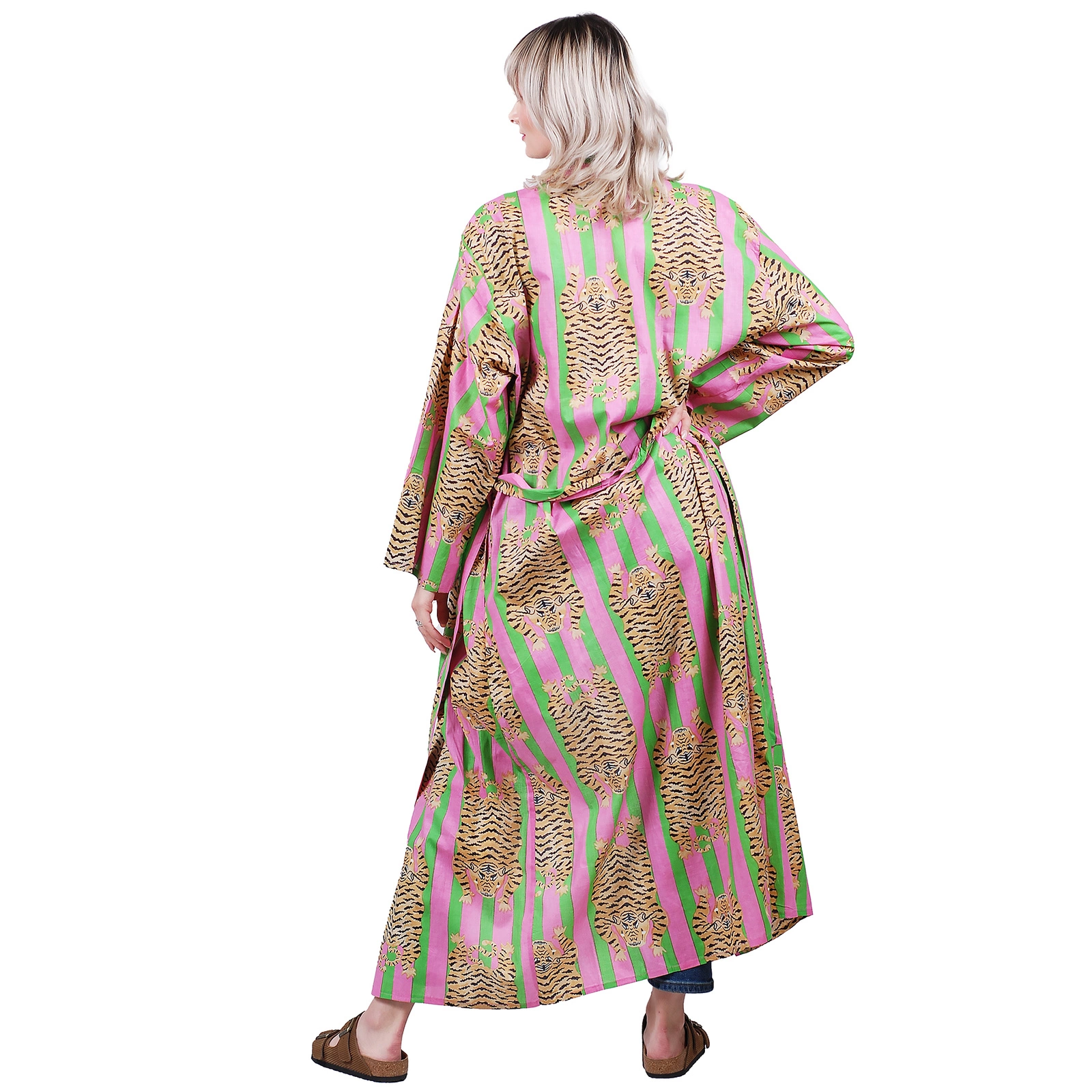 Kimono w tygrysy to lekki, zwiewny element garderoby, który łączy wygodę z wyrazistym stylem. Wykonane z delikatnego, oddychającego materiału, doskonale sprawdzi się zarówno jako narzutka na plażę, jak i efektowne uzupełnienie codziennej stylizacji. Motyw tygrysów nadaje mu charakteru i orientalnego uroku, przyciągając wzrok i podkreślając indywidualność osoby noszącej. Wykonane z przewiewnej bawełny kimono w tygrysy łączy funkcjonalność z wyrazistym wzornictwem. Kimono w tygrysy to połączenie egzotyki, lekkości i swobody – idealne dla osób, które lubią wyróżniać się subtelnie, ale z klasą.