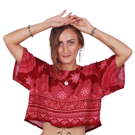 Koszulka wzorzysta krótka to lekka i wygodna propozycja dla osób ceniących oryginalny styl. Luźny krój zapewnia swobodę ruchów i komfort noszenia, a krótsza forma świetnie komponuje się zarówno ze spodniami, jak i spódnicami z wysokim stanem. Orientalne wzory inspirowane kulturą Tajlandii sprawiają, że każda koszulka ma unikalny charakter.