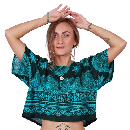 Koszulka wzorzysta krótka to lekka i wygodna propozycja dla osób ceniących oryginalny styl. Luźny krój zapewnia swobodę ruchów i komfort noszenia, a krótsza forma świetnie komponuje się zarówno ze spodniami, jak i spódnicami z wysokim stanem. Orientalne wzory inspirowane kulturą Tajlandii sprawiają, że każda koszulka ma unikalny charakter.