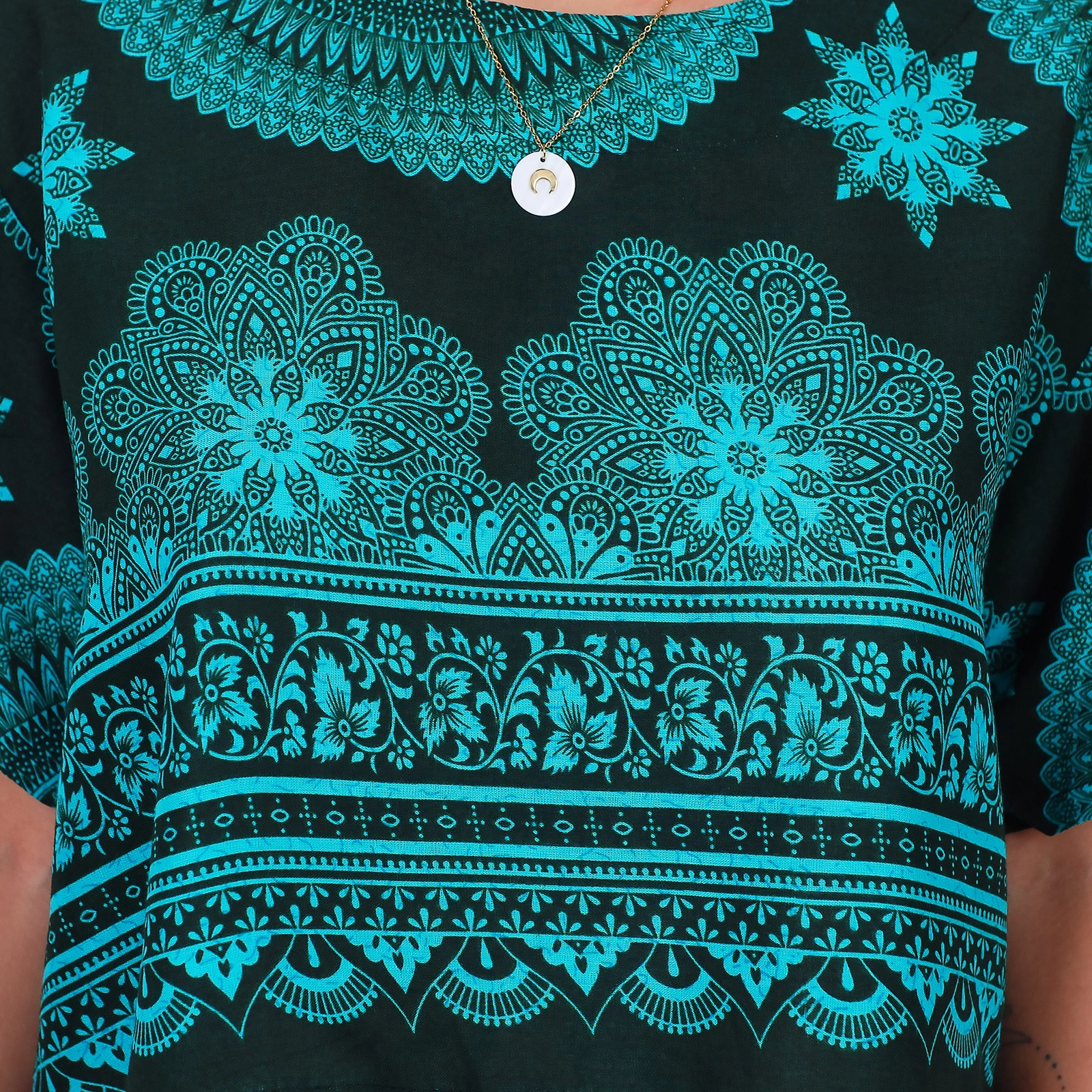 Koszulka wzorzysta krótka to połączenie praktyczności z wyrazistym designem – doskonała na lato, festiwale czy codzienne stylizacje. Koszulka wzorzysta krótka dostępna jest w kilku kolorach i wzorach, dzięki czemu można dopasować ją do własnego stylu i upodobań.