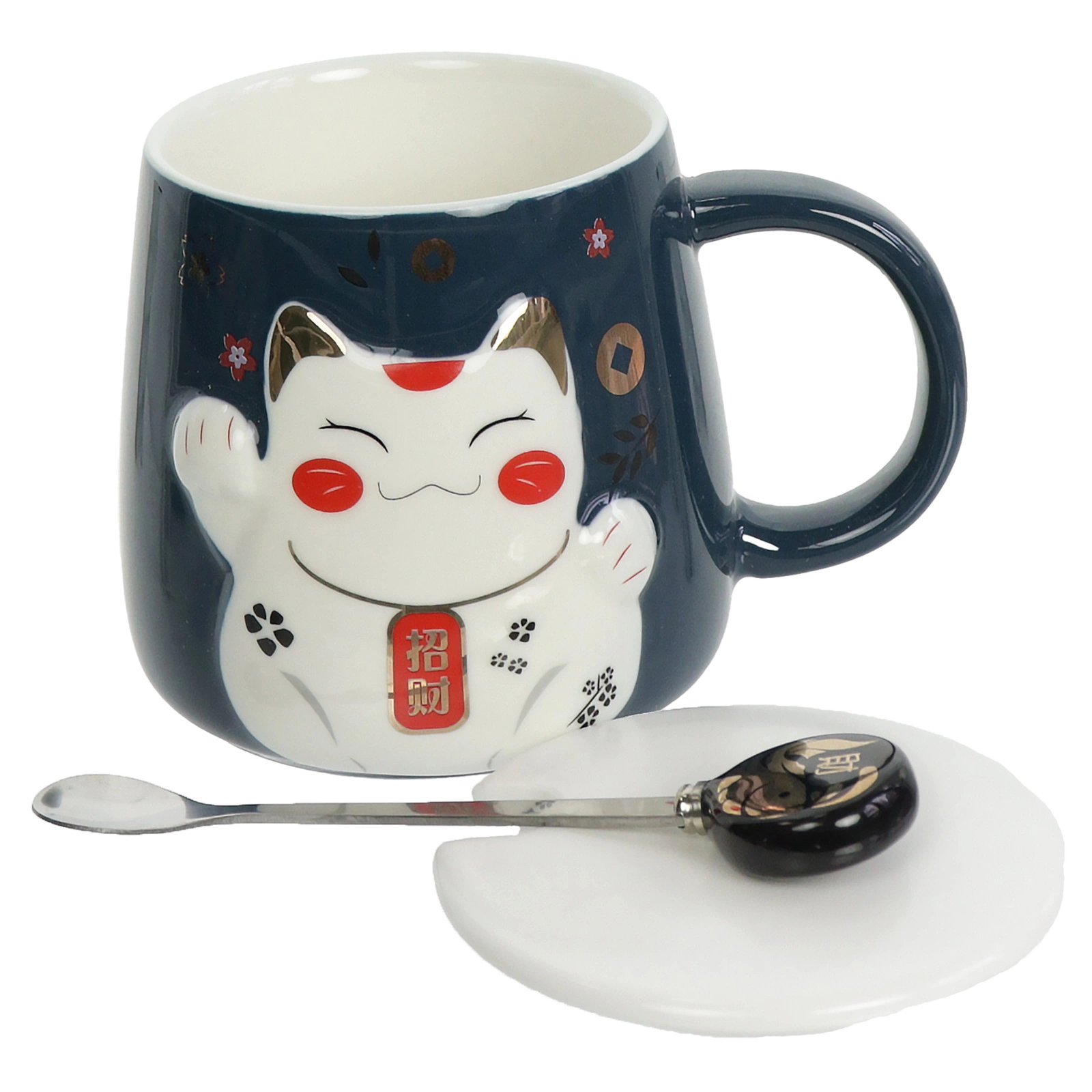 Maneki Neko, czyli "kot, który macha łapką", to popularny motyw w Japonii, który ma przynosić pomyślność i dobrą energię. Kubek z takim wzorem może więc być nie tylko praktycznym przedmiotem, ale również talizmanem, który przyciąga pozytywne wibracje do codziennego życia.
