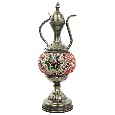 Lampa mozaikowa w kształcie wazy to wyjątkowy element dekoracyjny, który łączy funkcjonalność oświetlenia z artystycznym designem. Każda lampa powstaje ręcznie – drobne kawałki szkła są precyzyjnie cięte i układane w kształt wazy, tworząc niepowtarzalne wzory i motywy, często inspirowane tradycyjnym stylem tureckim lub marokańskim.