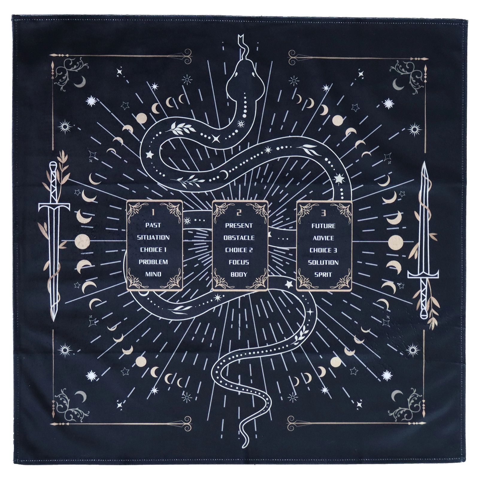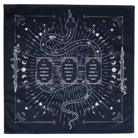 Mata do tarota to niezbędny element wyposażenia każdego miłośnika wróżenia i pracy z energią kart. Zapewnia ład podczas rozkładania kart oraz chroni je przed zabrudzeniami i zniszczeniem. Jej ozdobne symbole i delikatne wykończenie tworzą wyjątkową, mistyczną atmosferę sprzyjającą skupieniu i intuicji.