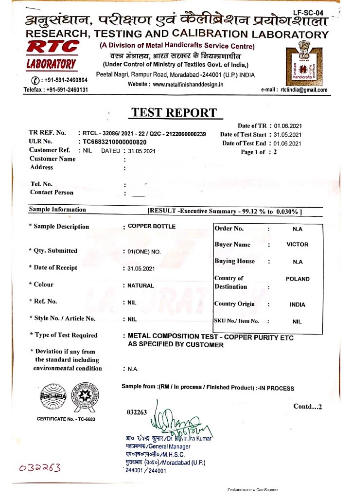 *Wyroby miedziane produkowane  w Indiach są wykonane ręcznie, więc mogą mieć drobne niedoskonałości, które w żadnym wypadku nie wpływają na jakość.