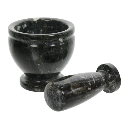Moździerz kamienny w rozmiarze 3 cali to praktyczne i solidne narzędzie, które sprawdzi się w każdej kuchni. Wykonany z naturalnego czarnego marmuru w pakistańskiej manufakturze, łączy trwałość z unikalnym wzornictwem – każdy egzemplarz różni się subtelnymi detalami struktury i barwy.