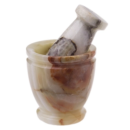 Moździerz kamienny w rozmiarze 3 cali to praktyczne i solidne narzędzie, które sprawdzi się w każdej kuchni. Wykonany z naturalnego onyksu w pakistańskiej manufakturze, łączy trwałość z unikalnym wzornictwem – każdy egzemplarz różni się subtelnymi detalami struktury i barwy.