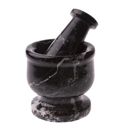 Moździerz kamienny w rozmiarze 3,5 cala to praktyczne i solidne narzędzie, które sprawdzi się w każdej kuchni. Wykonany z naturalnego czarnego marmuru w pakistańskiej manufakturze, łączy trwałość z unikalnym wzornictwem – każdy egzemplarz różni się subtelnymi detalami struktury i barwy.