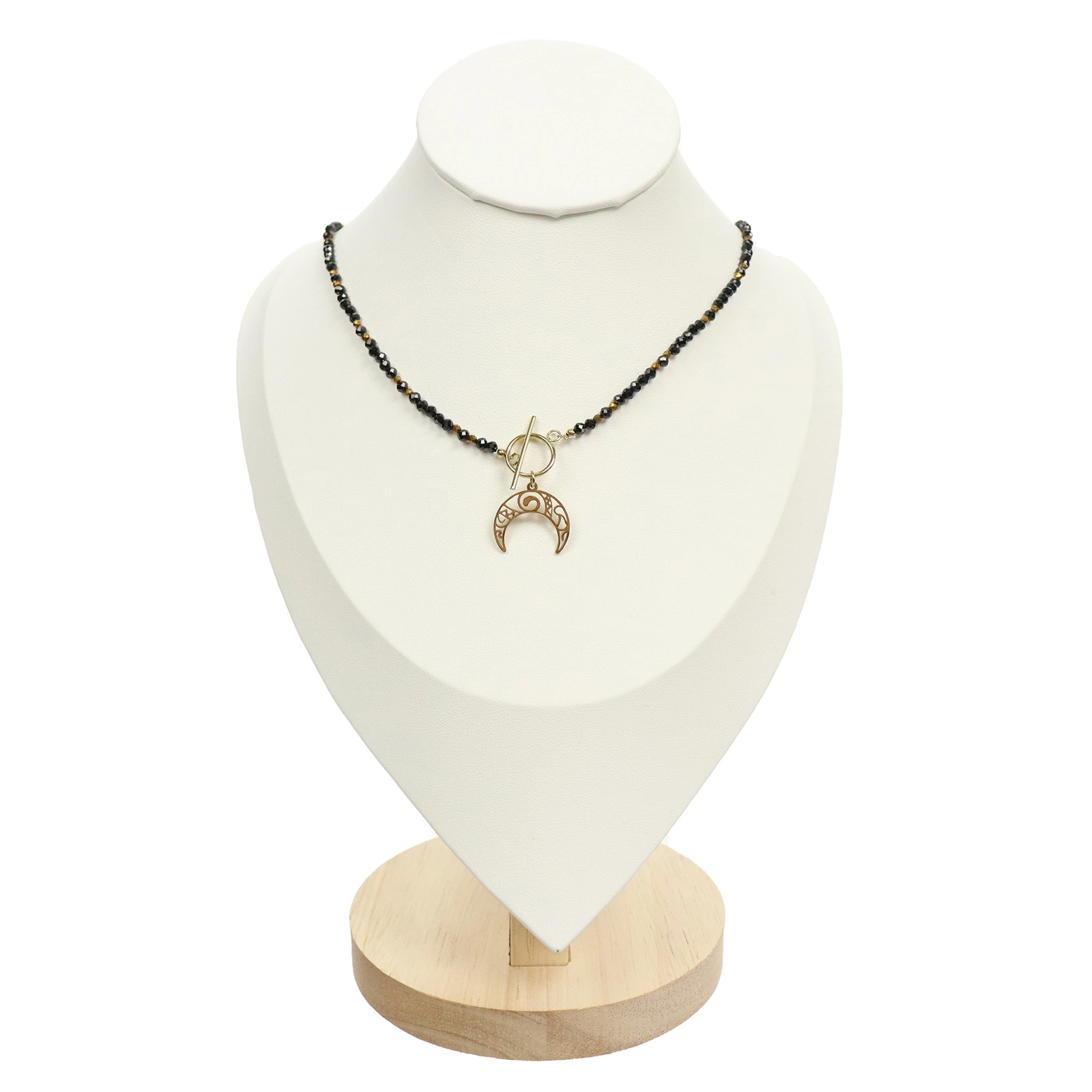 Unikalny naszyjnik wykonany z kamieni, które zachwycają swoją barwą i strukturą. Klasyczne piękno połączone z eleganckim zapięciem typu toggle dodaje mu wyjątkowego charakteru. Delikatne detale w postaci metalowych akcentów podkreślają szlachetność kamieni, a subtelna zawieszka dodaje całości stylowego wykończenia. Dostępny w różnych wariantach kolorystycznych, dzięki czemu można dobrać idealny model do swojego stylu. To doskonały wybór zarówno na co dzień, jak i na specjalne okazje – dla miłośników naturalnej biżuterii i eleganckich dodatków.