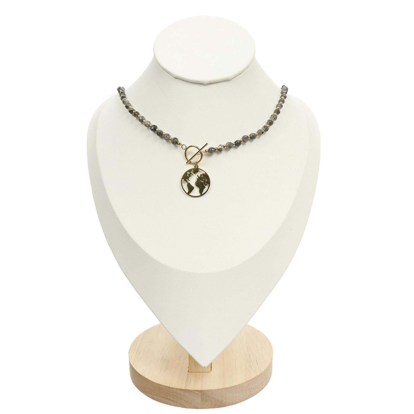 Unikalny naszyjnik wykonany z kamieni, które zachwycają swoją barwą i strukturą. Klasyczne piękno połączone z eleganckim zapięciem typu toggle dodaje mu wyjątkowego charakteru. Delikatne detale w postaci metalowych akcentów podkreślają szlachetność kamieni, a subtelna zawieszka dodaje całości stylowego wykończenia. Dostępny w różnych wariantach kolorystycznych, dzięki czemu można dobrać idealny model do swojego stylu. To doskonały wybór zarówno na co dzień, jak i na specjalne okazje – dla miłośników naturalnej biżuterii i eleganckich dodatków.