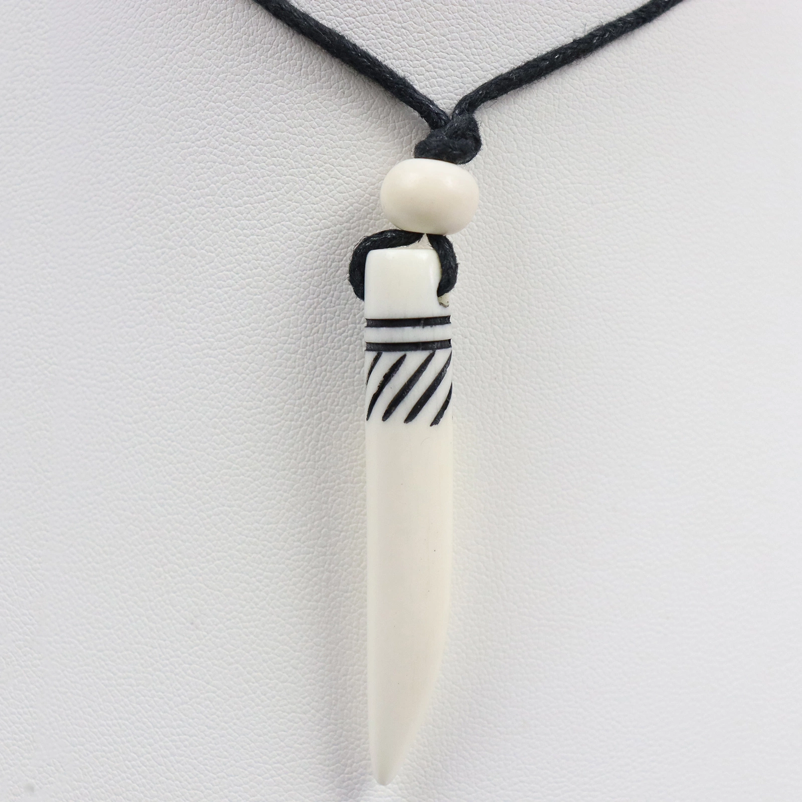 • Kieł: kość bawola (ręcznie rzeźbiony)