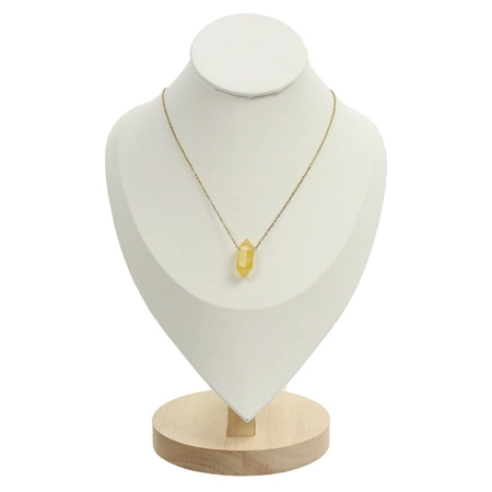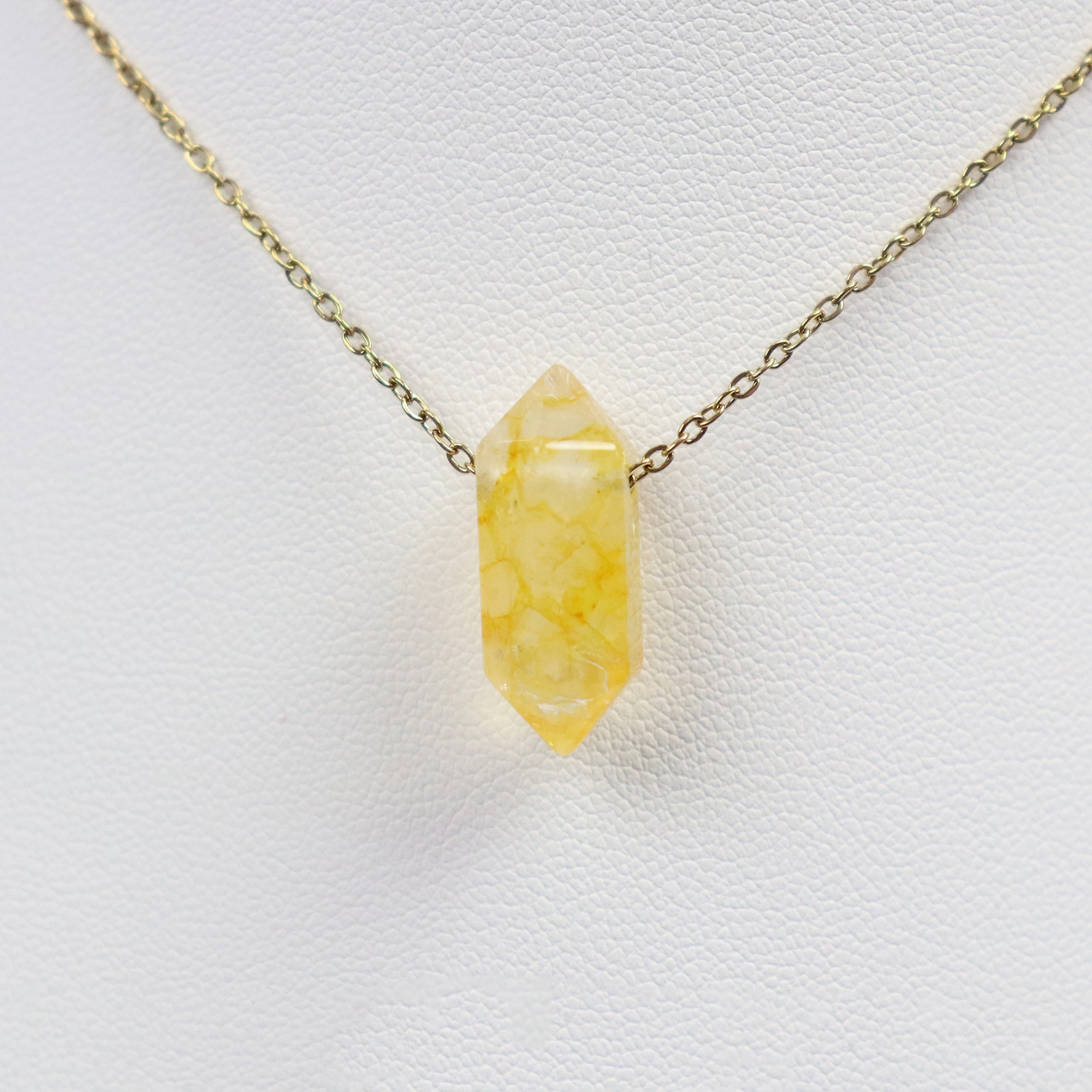 Naszyjnik złoty z wisiorkiem kamiennym to biżuteria, która łączy naturalną siłę kamienia z elegancją złotego wykończenia. Wisiorek w kształcie kryształu przyciąga uwagę swoją formą i subtelnym połyskiem, podkreślając indywidualny styl. Zawieszony na delikatnym łańcuszku w złotym kolorze ze stali nierdzewnej, naszyjnik złoty z wisiorkiem kamiennym doskonale wpisuje się w aktualne trendy i ponadczasową estetykę. To naszyjnik, który łączy symboliczny charakter kamienia z elegancją złotych detali – wyważony, stylowy i wyjątkowy. Dzięki uniwersalnej formie, świetnie sprawdza się zarówno w codziennych stylizacjach, jak i jako subtelny akcent przy bardziej wyrafinowanych okazjach. Naszyjnik złoty z wisiorkiem kamiennym to coś więcej niż ozdoba – może być osobistym talizmanem lub wyrazem intencji. Każdy egzemplarz jest wyjątkowy dzięki naturalnemu ukształtowaniu kamienia, a kolor kamieni może się delikatnie różnić od prezentowanego na zdjęciu, co podkreśla ich unikalny charakter.