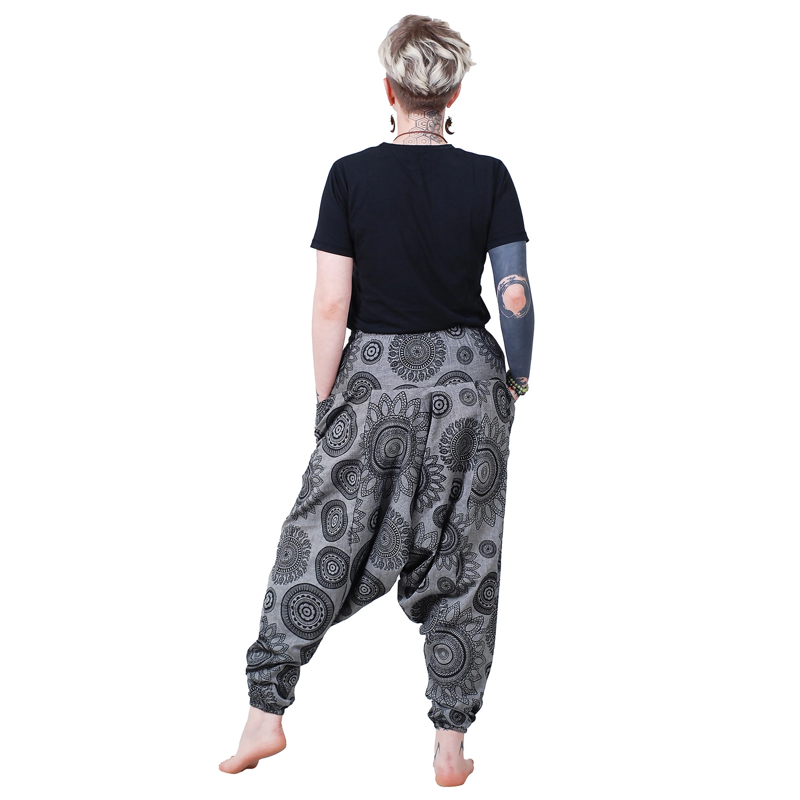 Komfort i wyrazisty styl w jednym – Nepal szarawary mandala to propozycja dla osób ceniących swobodę ruchów i unikalne wzornictwo. Spodnie zostały uszyte z lekkiej, przewiewnej bawełny, dzięki czemu sprawdzą się zarówno na co dzień, jak i podczas podróży czy praktyki jogi. Elastyczna talia z regulacją sznurkiem i kieszenie po bokach podnoszą wygodę noszenia. Wzór mandali nadaje spodniom charakterystyczny, etniczny akcent i czyni każdy egzemplarz nieco innym.