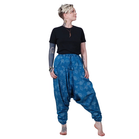 Wyjątkowe szarawary bawełniane w grzyby to połączenie wygody, funkcjonalności i wyrazistego wzoru inspirowanego naturą. Luźny krój oraz elastyczny pas sprawiają, że świetnie sprawdzą się zarówno na co dzień, jak i podczas relaksu w domu, praktyki jogi czy letnich wyjazdów. Oddychająca, lekka bawełna zapewnia komfort noszenia nawet w gorące dni.