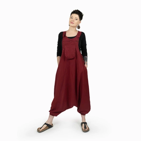 Wysokiej jakości wykonanie i materiał idą w parze z niezwykle wygodnym krojem i przyciągającą wzrok stylistyką. Pochodzące z Nepalu ogrodniczki mają krój szarawarów – obniżony krok oraz luźne nogawki. Ramiączka zapinane są na subtelne, nierzucające się w oczy guziki. Możliwość regulacji pozwala na zmianę długość ramiączek w zależności od wzrostu oraz preferowanego stylu. Ogrodniczki zachęcają również pięknym kolorem. Z jednej strony niezwykle wygodne, z drugiej – przyciągające wzrok oryginalną stylistyką. Doskonale sprawdzą się zarówno na co dzień, jak i podczas weekendowych czy wakacyjnych wyjazdów.