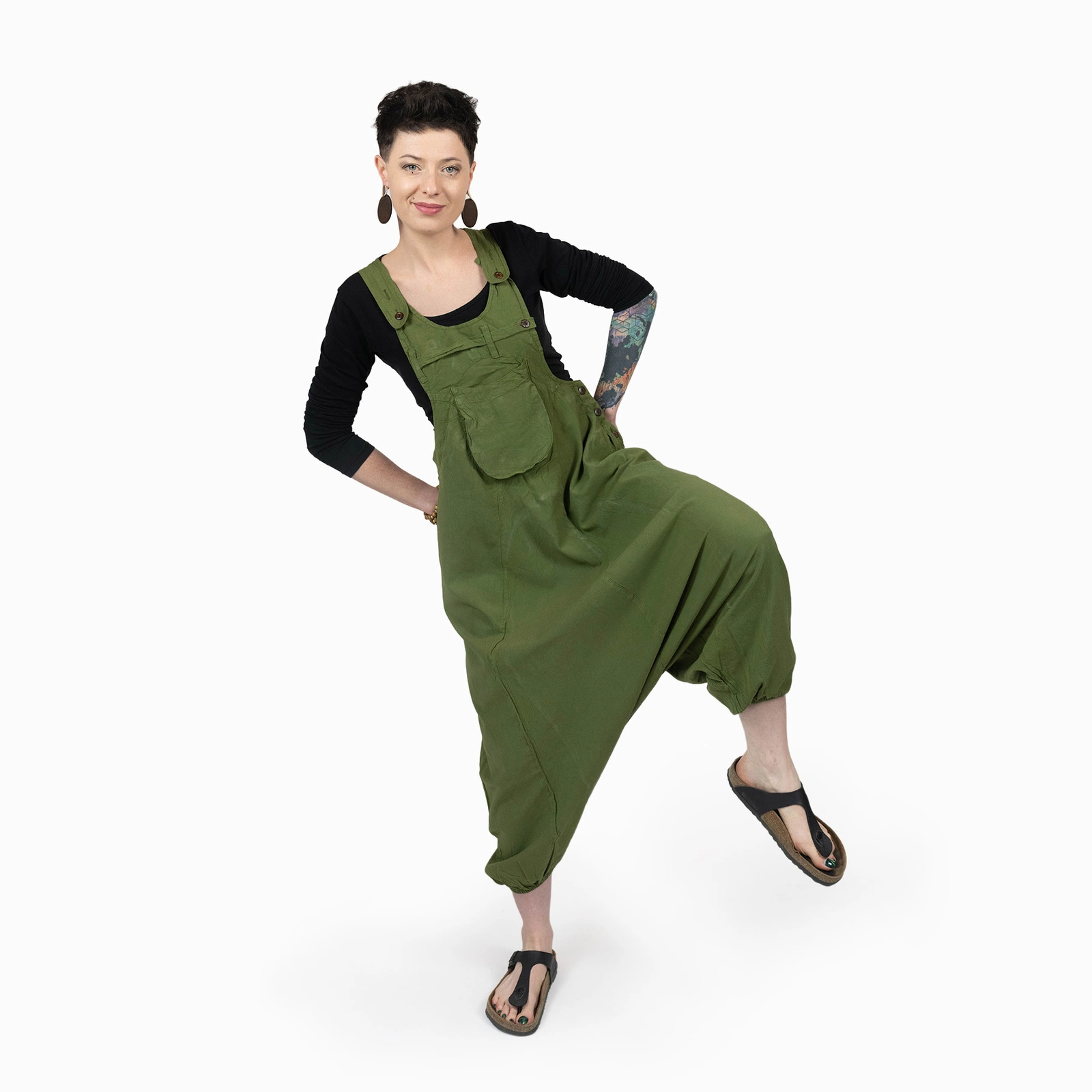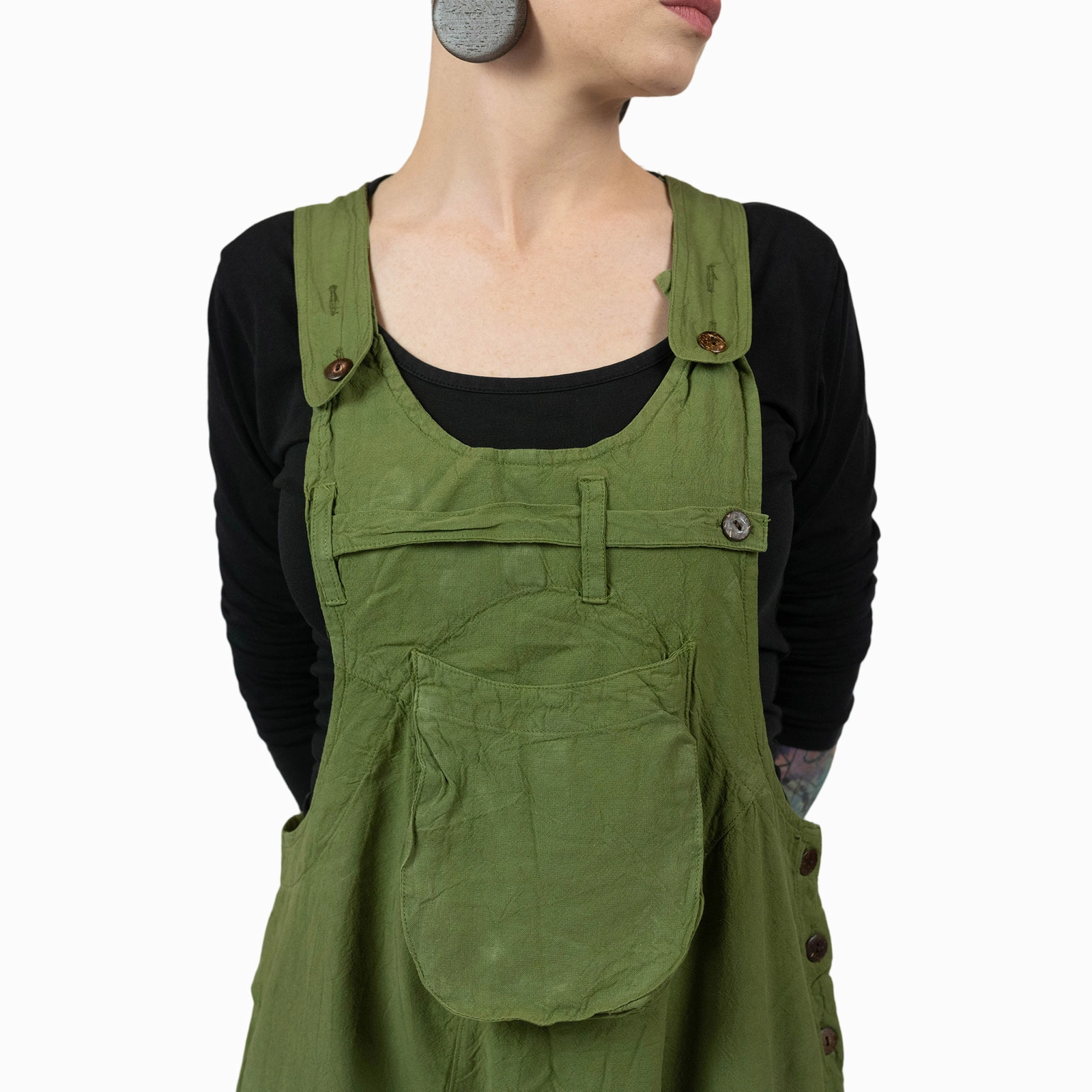 Wysokiej jakości wykonanie i materiał idą w parze z niezwykle wygodnym krojem i przyciągającą wzrok stylistyką. Pochodzące z Nepalu ogrodniczki mają krój szarawarów – obniżony krok oraz luźne nogawki. Ramiączka zapinane są na subtelne, nierzucające się w oczy guziki. Możliwość regulacji pozwala na zmianę długość ramiączek w zależności od wzrostu oraz preferowanego stylu. Ogrodniczki zachęcają również pięknym kolorem. Z jednej strony niezwykle wygodne, z drugiej – przyciągające wzrok oryginalną stylistyką. Doskonale sprawdzą się zarówno na co dzień, jak i podczas weekendowych czy wakacyjnych wyjazdów.