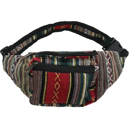 Nerka z Nepalu to praktyczna i stylowa saszetka biodrowa wykonana z grubej, naturalnej bawełny o wyrazistym, etnicznym wzorze. Idealna na co dzień, na festiwal, spacer czy w podróży – pomieści najpotrzebniejsze drobiazgi, pozostawiając ręce wolne. Regulowany pasek pozwala dopasować ją do sylwetki i nosić zarówno na biodrach, jak i przez ramię.