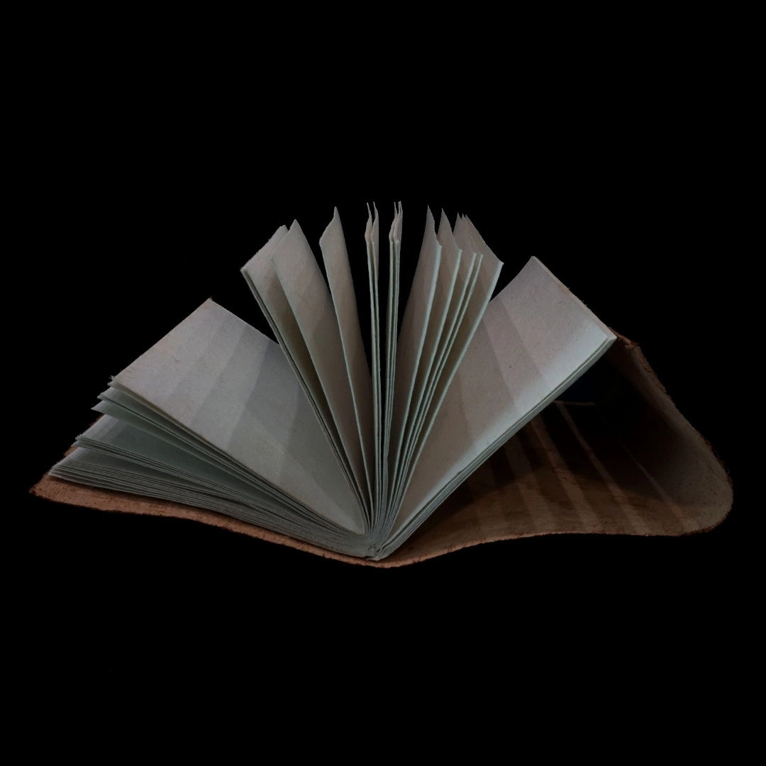 Kartki wewnątrz notesu: papier ręcznie czerpany