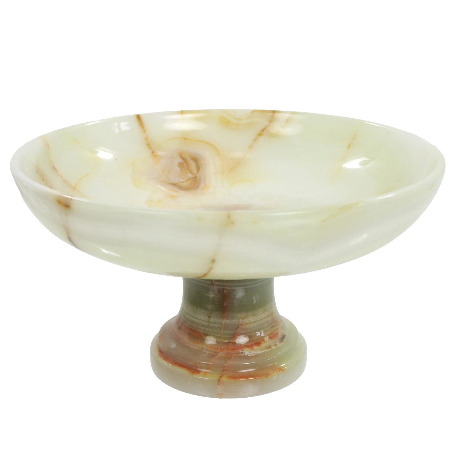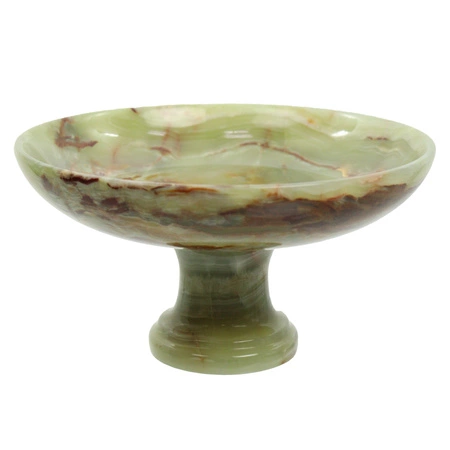 Ta patera z onyksu to hołd dla natury, która swoim kapryśnym rzeźbieniem nadała jej niepowtarzalny wygląd. Każdy centymetr tego kamienia emanuje elegancją i jednocześnie siłą, tworząc niezapomniane wrażenie. Onyks, z którego wykonano tę patery, zachwyca swoją subtelnością i głębią barw. Jego naturalne wzory i odcienie, przeniknięte złotymi i brązowymi refleksami, nadają mu niezwykły urok, który ożywia każde wnętrze.