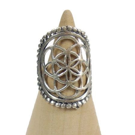 Pierścionek indyjski z motywem Kwiatu Życia to propozycja dla osób, które szukają biżuterii o symbolice wspierającej medytację, uważność i poczucie harmonii. Dzięki swojemu unikalnemu wzorowi może stać się osobistym talizmanem przypominającym o potrzebie równowagi i spokoju w codziennym życiu.