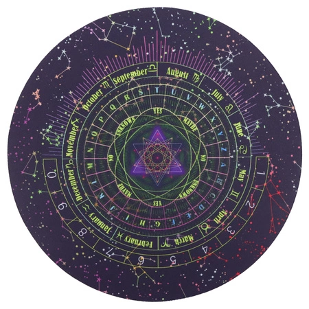 Podkładka pod wahadełko i myszkę łączy w sobie mistyczne wzory zodiakalne z nowoczesnym designem, tworząc niepowtarzalny klimat sprzyjający kreatywności i skupieniu.