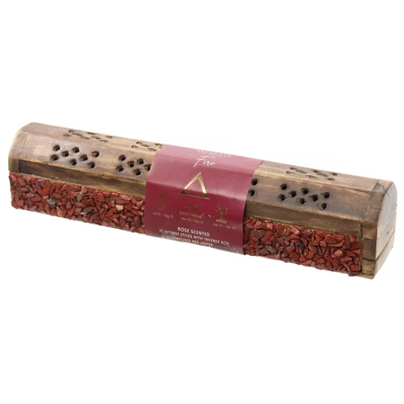 • Czerwona – kadzidełka róża, przyozdobiona kamieniem czerwony jaspis, dodająca energii i ciepła.