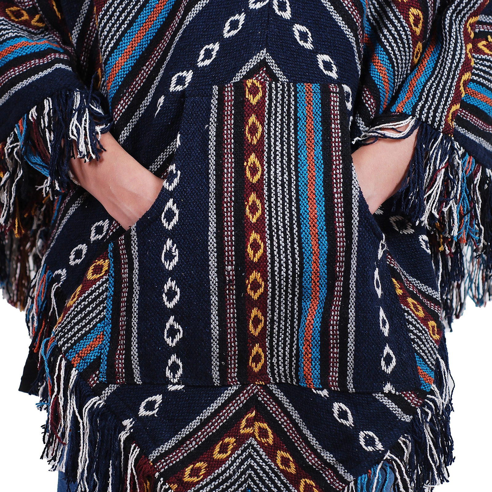 Poncho krótkie to element garderoby, który w okresie jesienno-zimowym powinien znaleźć się w kolekcji każdego miłośnika stylu hippie. Piękne, przyciągające wzrok kolory i wzory doskonale współgrają z oryginalnym krojem.  Fani oryginalnych dodatków docenią również nietuzinkowe frędzle, którymi zostało zwieńczone poncho krótkie. Wygodny, oversizowy krój oraz ciepły materiał sprawiają, że poncho krótkie będzie doskonałym wyborem na chłodne dni. Może być noszone na sweter lub bluzę, a w zimowe dni – na kurtkę lub płaszcz. Sprawdzi się zarówno na co dzień, jak i podczas weekendowych wyjazdów na łono natury.