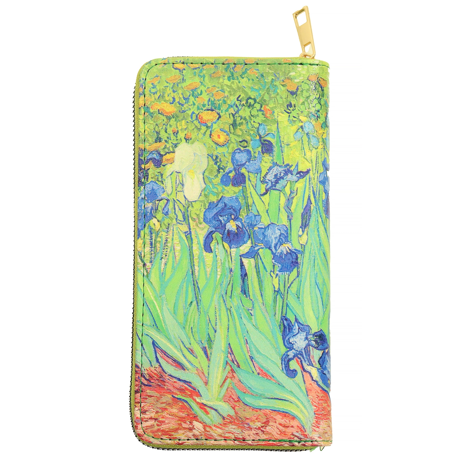 Portfel dzieło sztuki to połączenie praktycznego dodatku z wyjątkowym designem inspirowanym słynnym obrazem „Irysy” autorstwa Vincenta van Gogha. Wykonany z trwałego, łatwego w czyszczeniu materiału syntetycznego, portfel ma zapinanie na suwak, które chroni jego zawartość. Wewnątrz znajduje się miejsce na banknoty, monety oraz kilka przegródek na karty, co czyni go funkcjonalnym na co dzień.