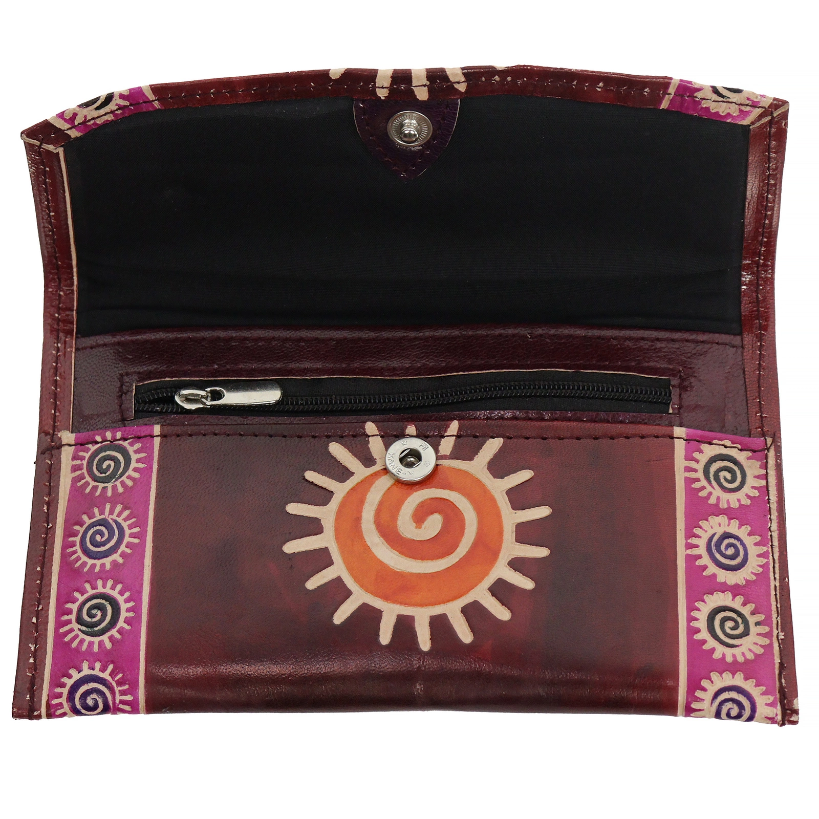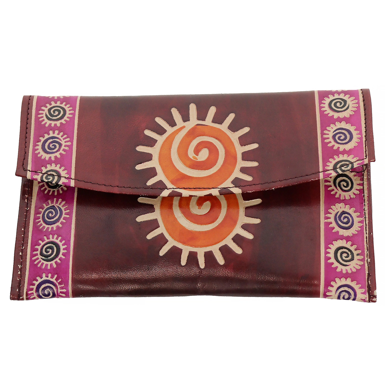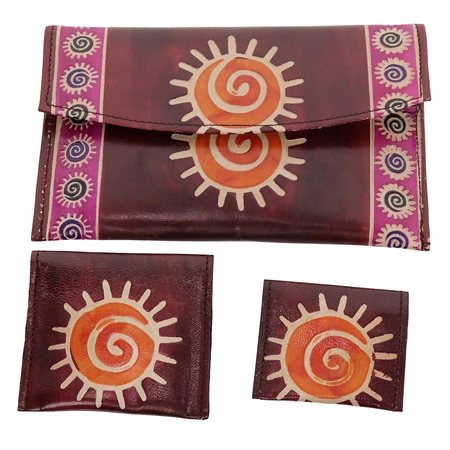 Zestaw portfelików skórzanych z motywem etnicznym to praktyczny i stylowy dodatek dla każdego, kto ceni oryginalne wzornictwo. Wykonany z ręcznie malowanej skóry ekologicznej, zachwyca intensywnymi barwami i unikatowym wzorem – od geometrycznych kompozycji po energetyczne motywy słoneczne. Zamykany na wygodny zatrzask, zapewnia bezpieczeństwo przechowywanych drobiazgów. Idealny do przechowywania monet, kart, kluczy czy innych małych przedmiotów. Kompaktowy i lekki, świetnie sprawdzi się zarówno w torebce, jak i kieszeni. Doskonały wybór dla miłośnika rękodzieła i kolorowych akcentów w codziennym stylu. Największy portfel posiada trzy kieszonki – dwie z przodu, w tym jedną zapinaną na zamek, oraz jedną główną. Średni model wyposażony jest w dwie kieszenie, które ułatwiają organizację drobiazgów, a najmniejszy ma jedną.