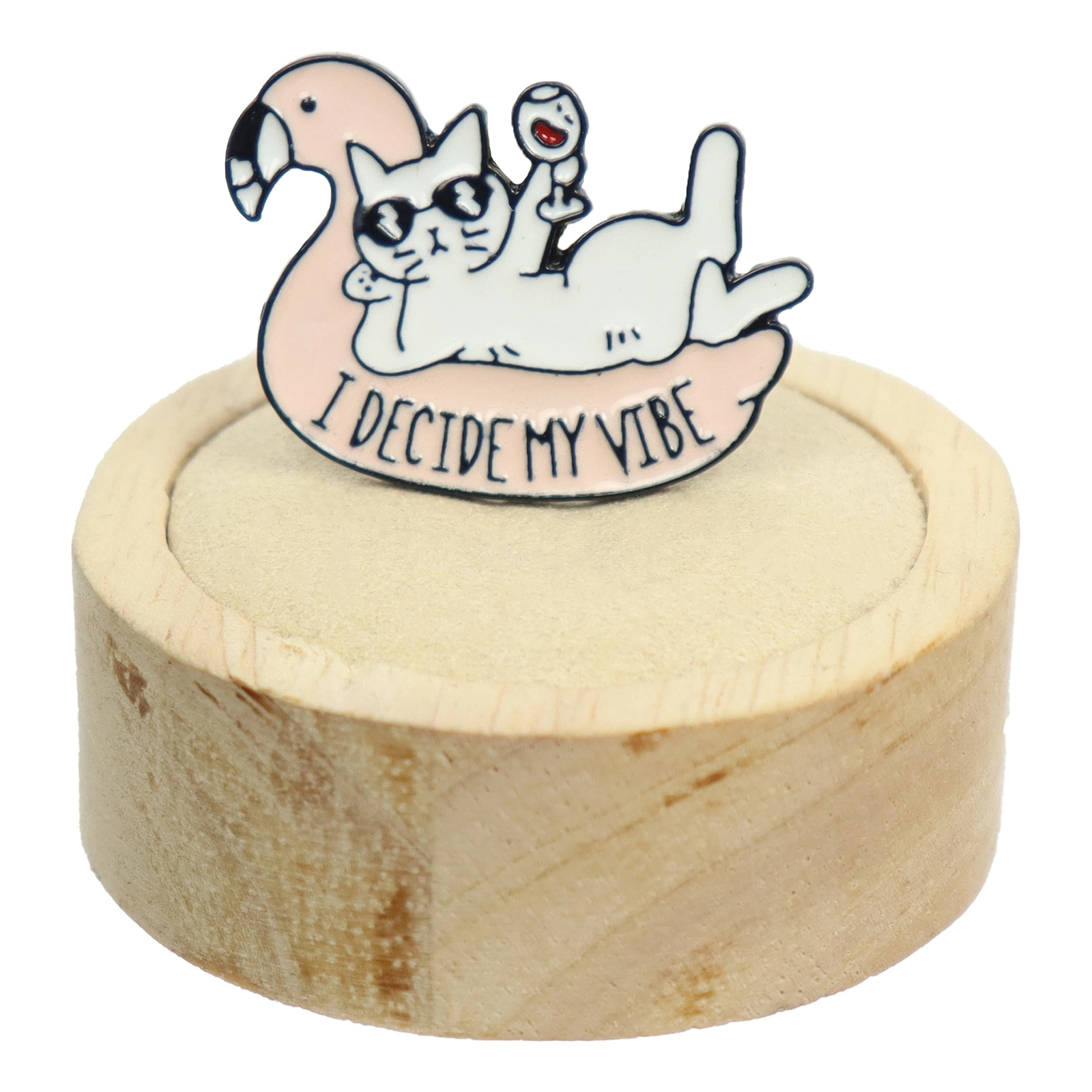 • Kot w dmuchanym flamingu z napisem "I decide my vibe"