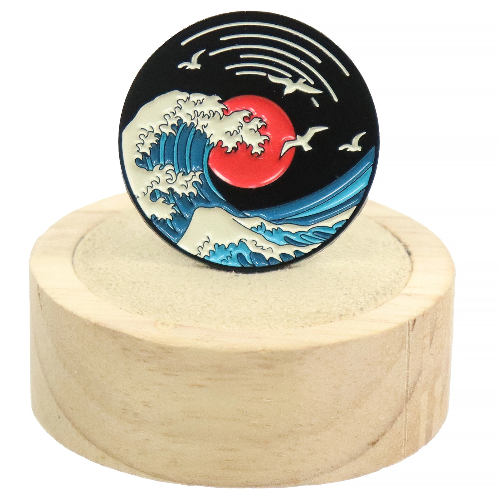 Przypinki z wielką falą w Kanagawie to drobny dodatek, który świetnie sprawdzi się jako ozdoba plecaka, torby czy kurtki. Wykonane z trwałego metalu i pokryte błyszczącą folią ochronną, zachowują swój wygląd przez długi czas.