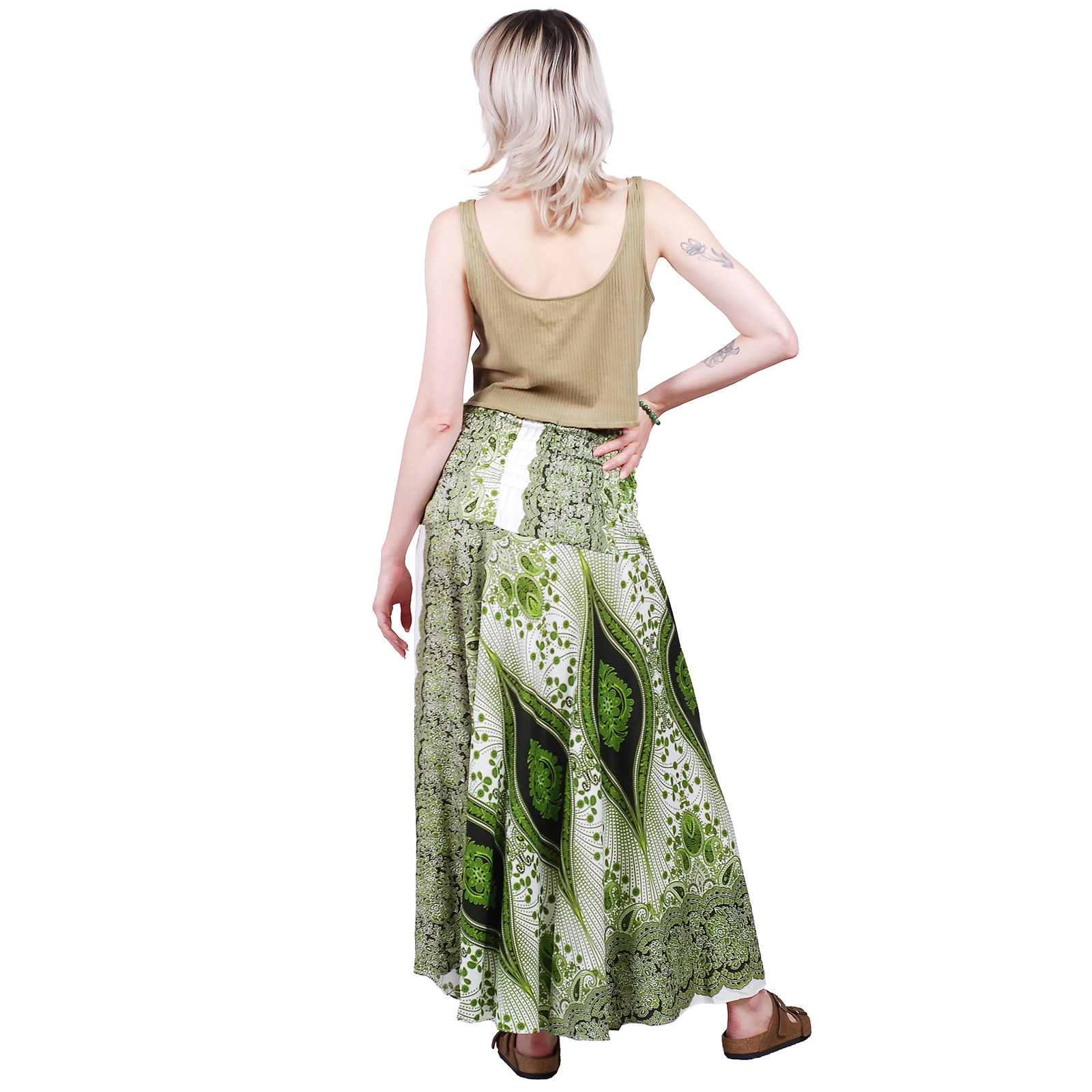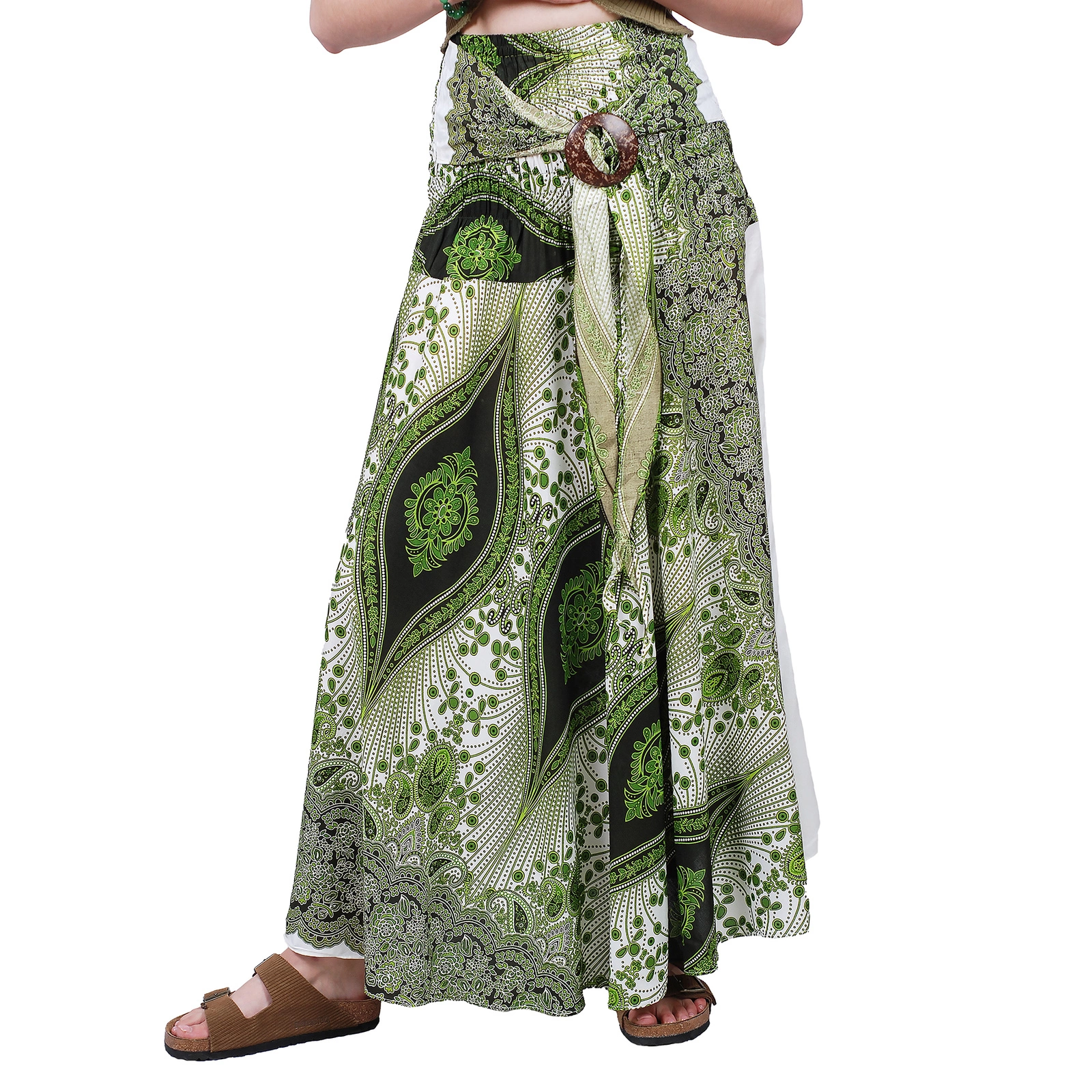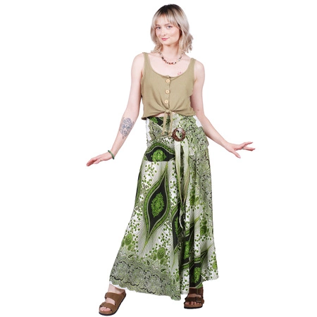 Spódnica wzorzysta wiązana to idealna propozycja na lato dla osób ceniących swobodę i styl. Wykonana z lekkiej wiskozy, miękko układa się na sylwetce i zapewnia komfort w upalne dni. Regulowany pas z wiązaniem i ozdobną klamrą pozwala dopasować fason do różnych typów figury.