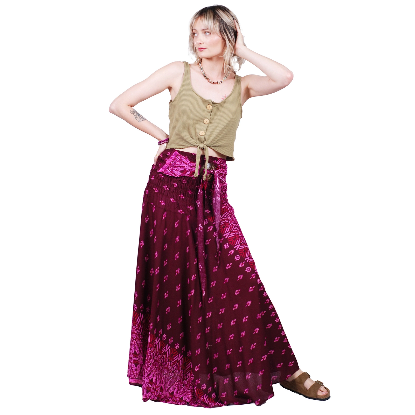 Spódnica wzorzysta wiązana to idealna propozycja na lato dla osób ceniących swobodę i styl. Wykonana z lekkiej wiskozy, miękko układa się na sylwetce i zapewnia komfort w upalne dni. Regulowany pas z wiązaniem i ozdobną klamrą pozwala dopasować fason do różnych typów figury.