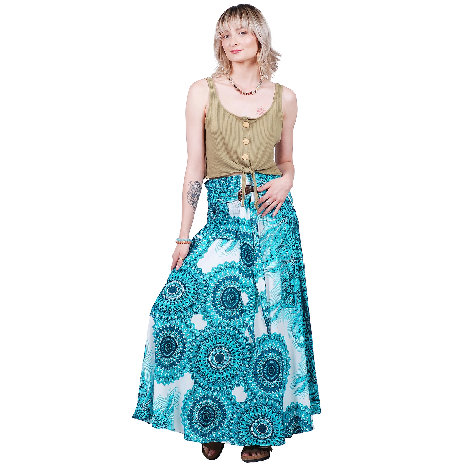 Dzięki efektownemu wzorowi i praktycznemu krojowi, spódnica wzorzysta wiązana sprawdzi się zarówno na co dzień, jak i na wakacyjnych wyjazdach.