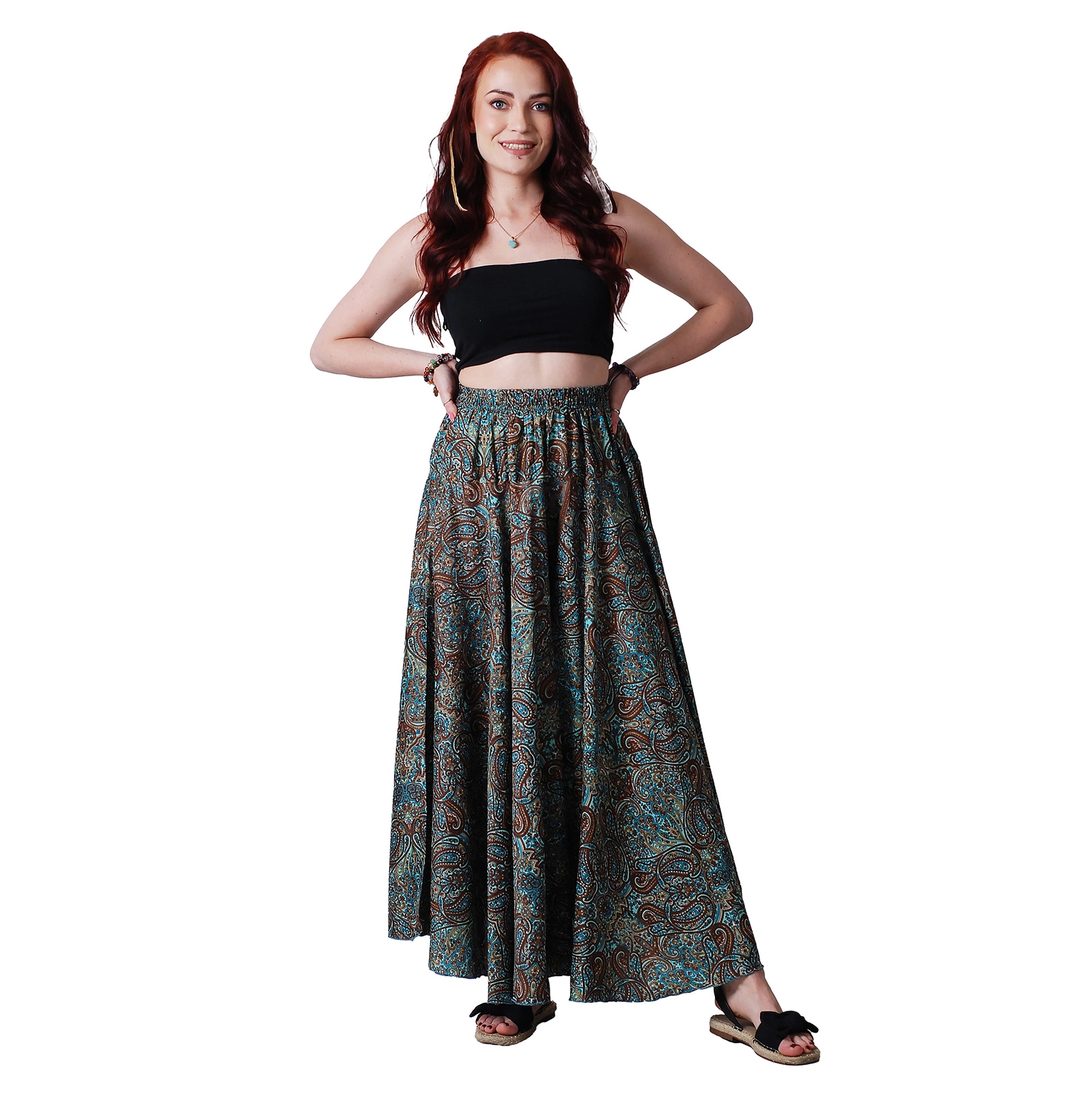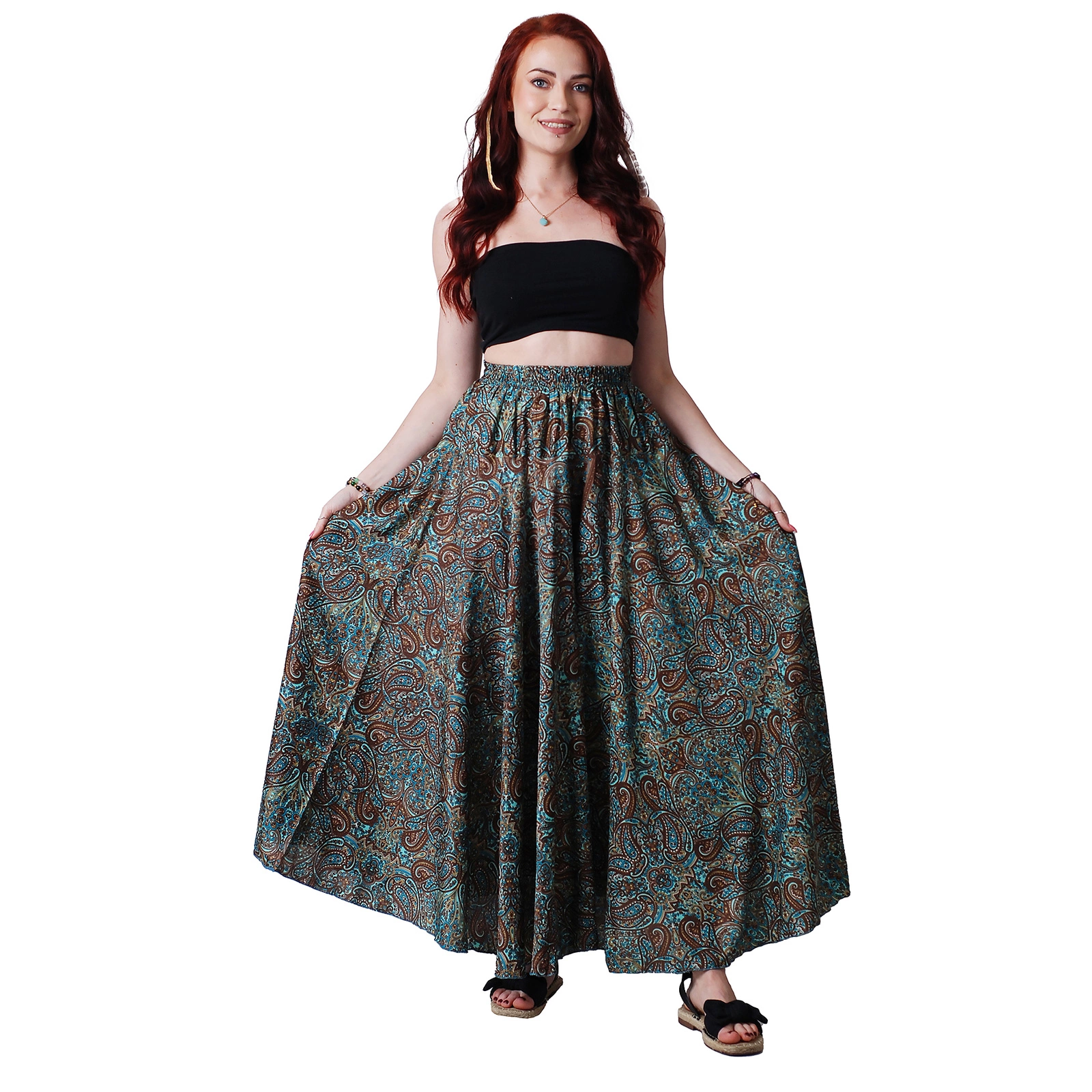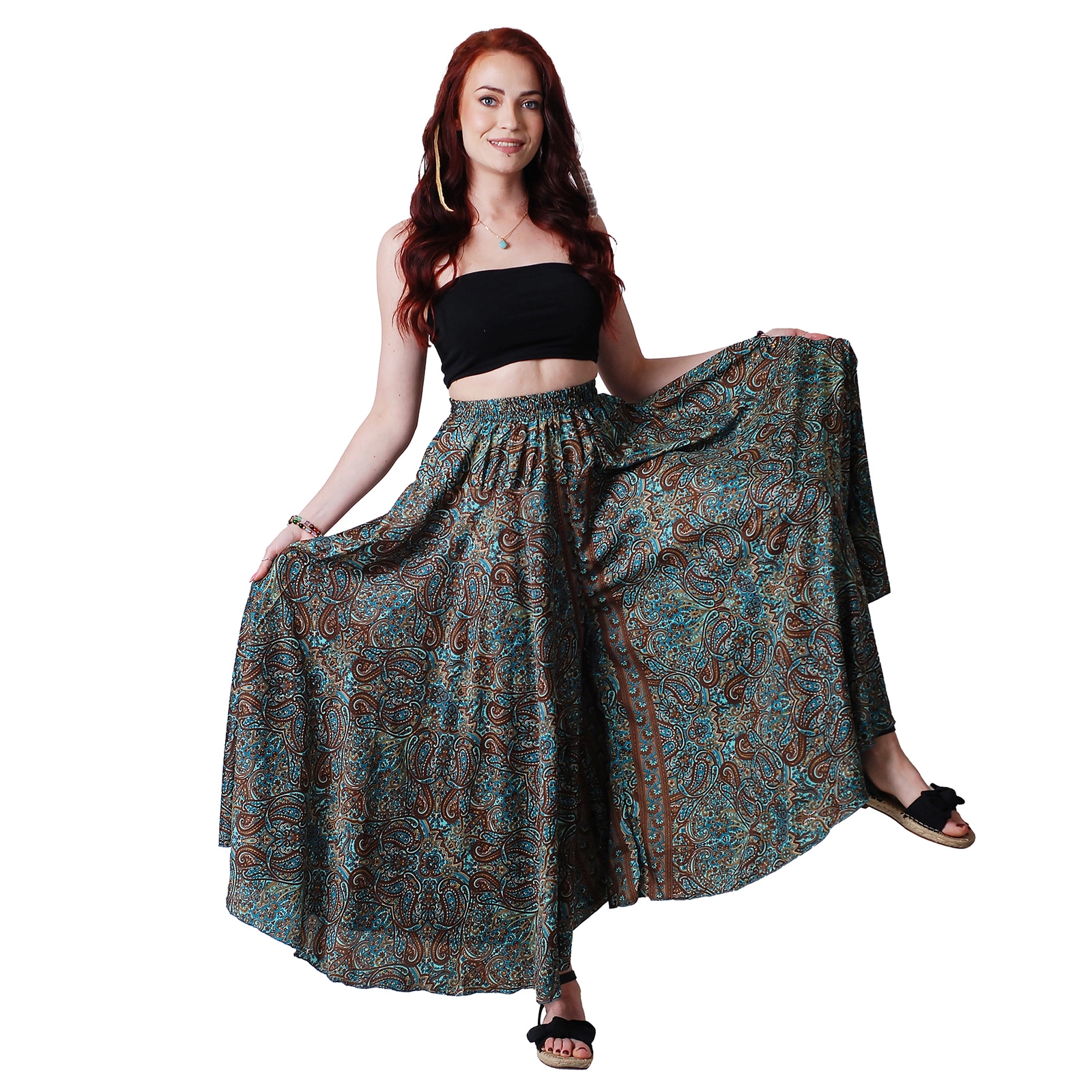 Uszyte z lekkiego materiału spodnie motyle łączą wygodę codziennego noszenia z oryginalnym, etnicznym wzornictwem.