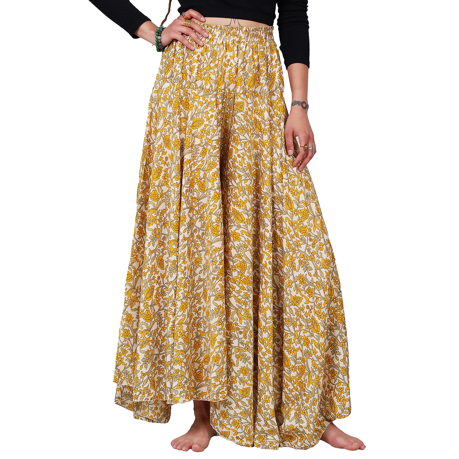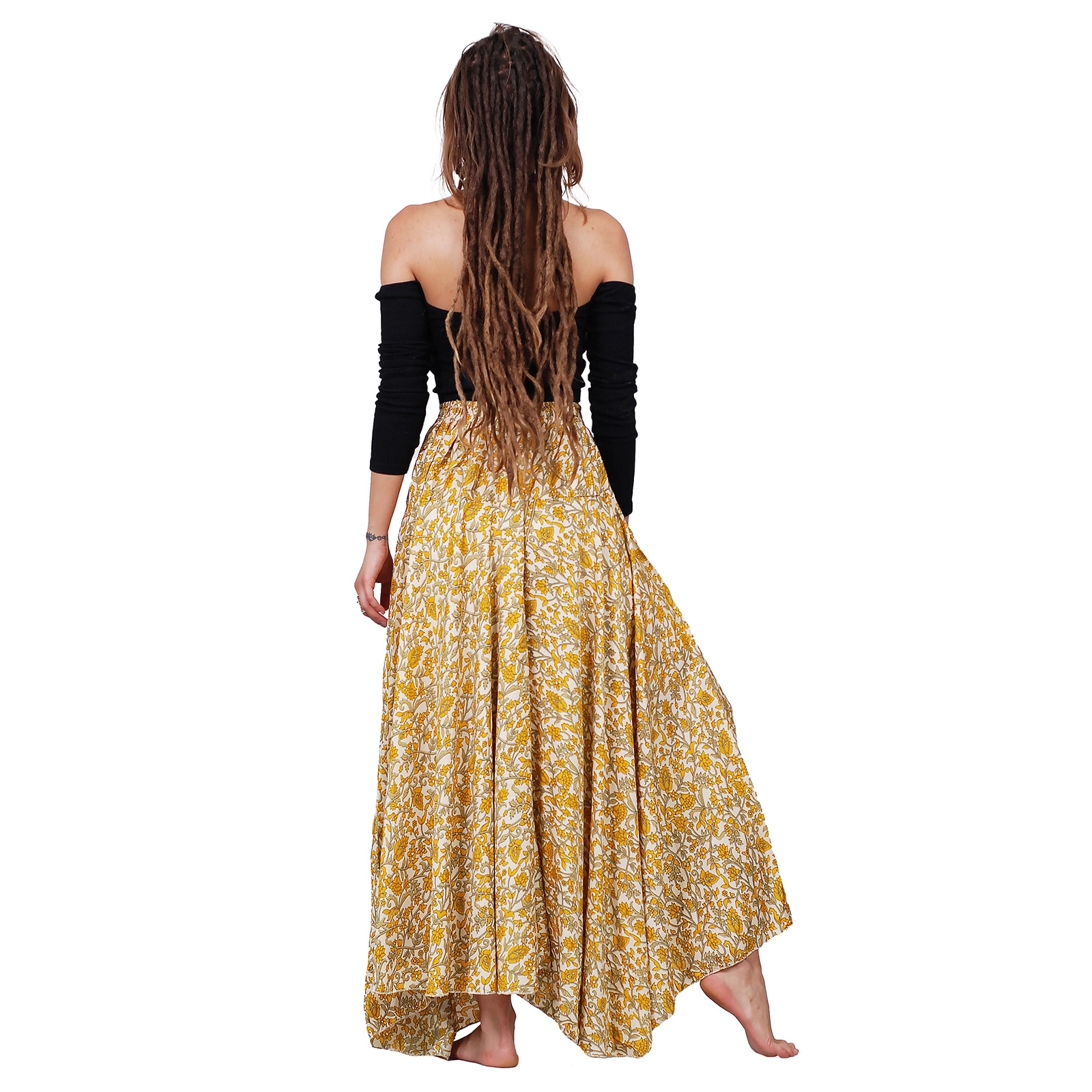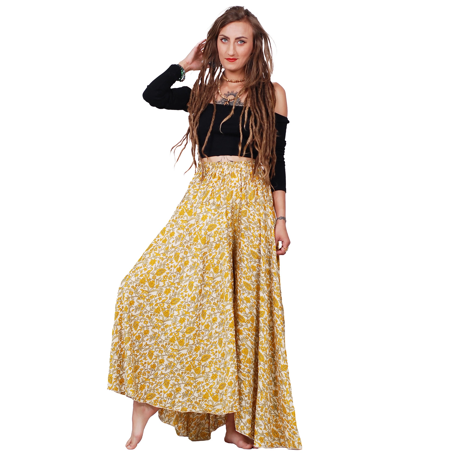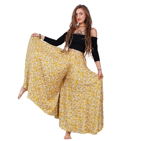 Uszyte z lekkiego materiału spodnie motyle łączą wygodę codziennego noszenia z oryginalnym, etnicznym wzornictwem.